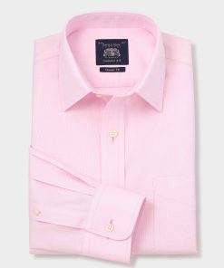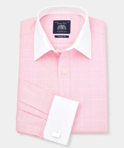 Savile Row Men’s Pink White Cotton Prince Of Wales Check Slim Fit Formal Shirt – Double Cuff | Pink