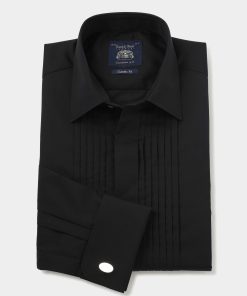 Savile Row Men’s Black Pleated Fly Front Classic Fit Dress Shirt – Double Cuff | Black