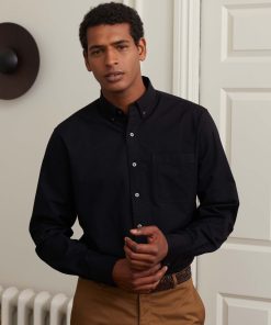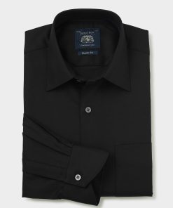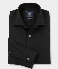 Savile Row Men’s Black Cotton Herringbone Classic Fit Formal Shirt – Single Cuff | Black