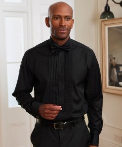 Savile Row Men’s Black Pleated Fly Front Classic Fit Dress Shirt – Double Cuff | Black