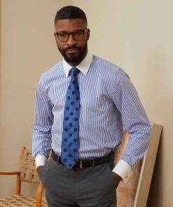 Savile Row Men’s Blue Bengal Stripe Windsor Collar Classic Fit Formal Shirt – Double Cuff | Blue
