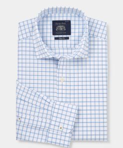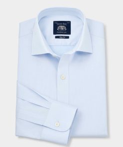 Savile Row Men’s Sky Blue Twill Slim Fit Shirt W/ Cutaway Collar – Single Or Double Cuff | Sky