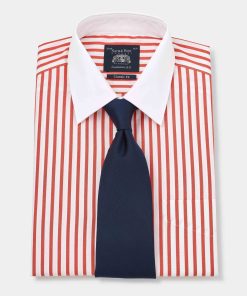 Savile Row Men’s Red Stripe Classic Fit Contrast Collar Formal Shirt With White Collar & Cuffs | Red