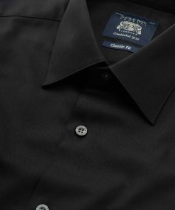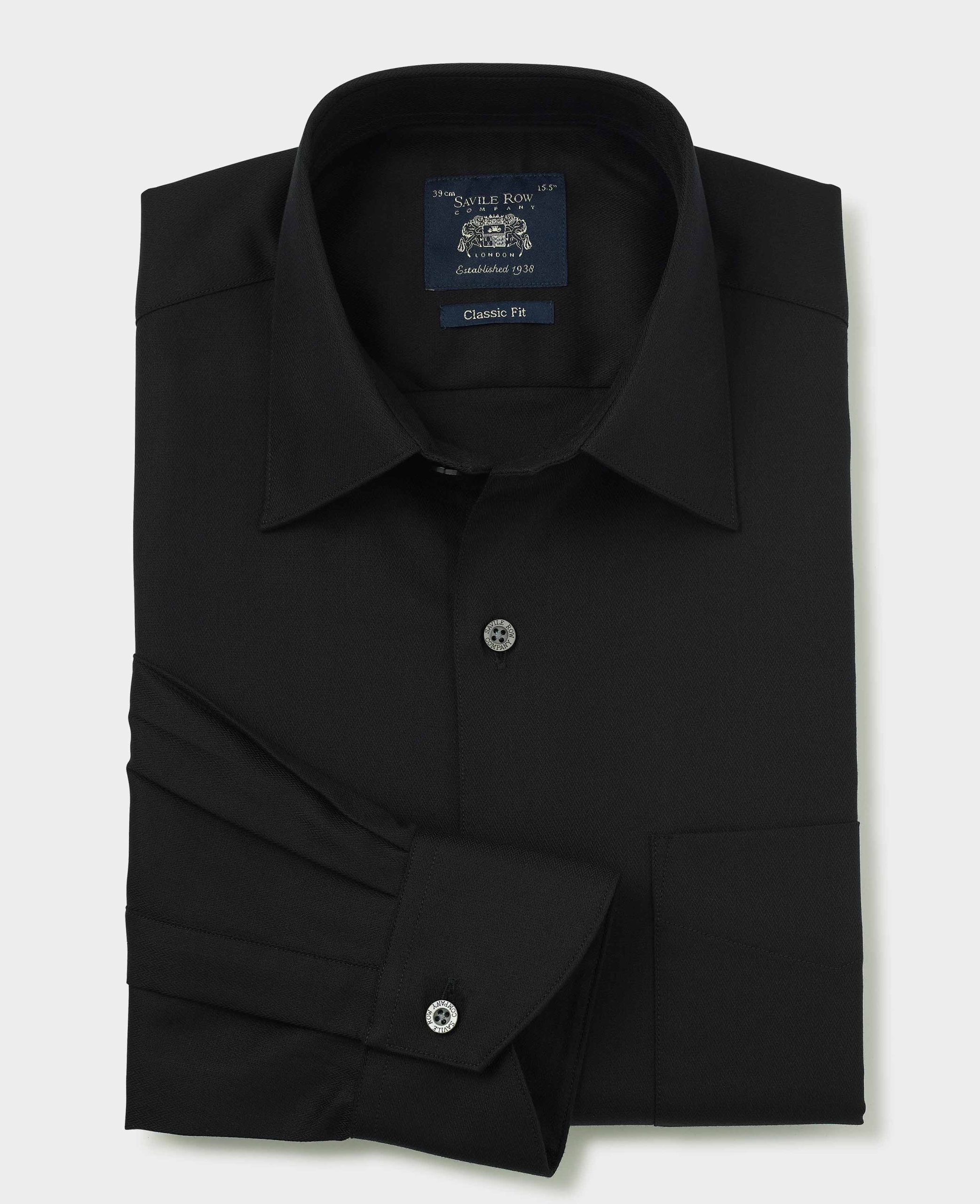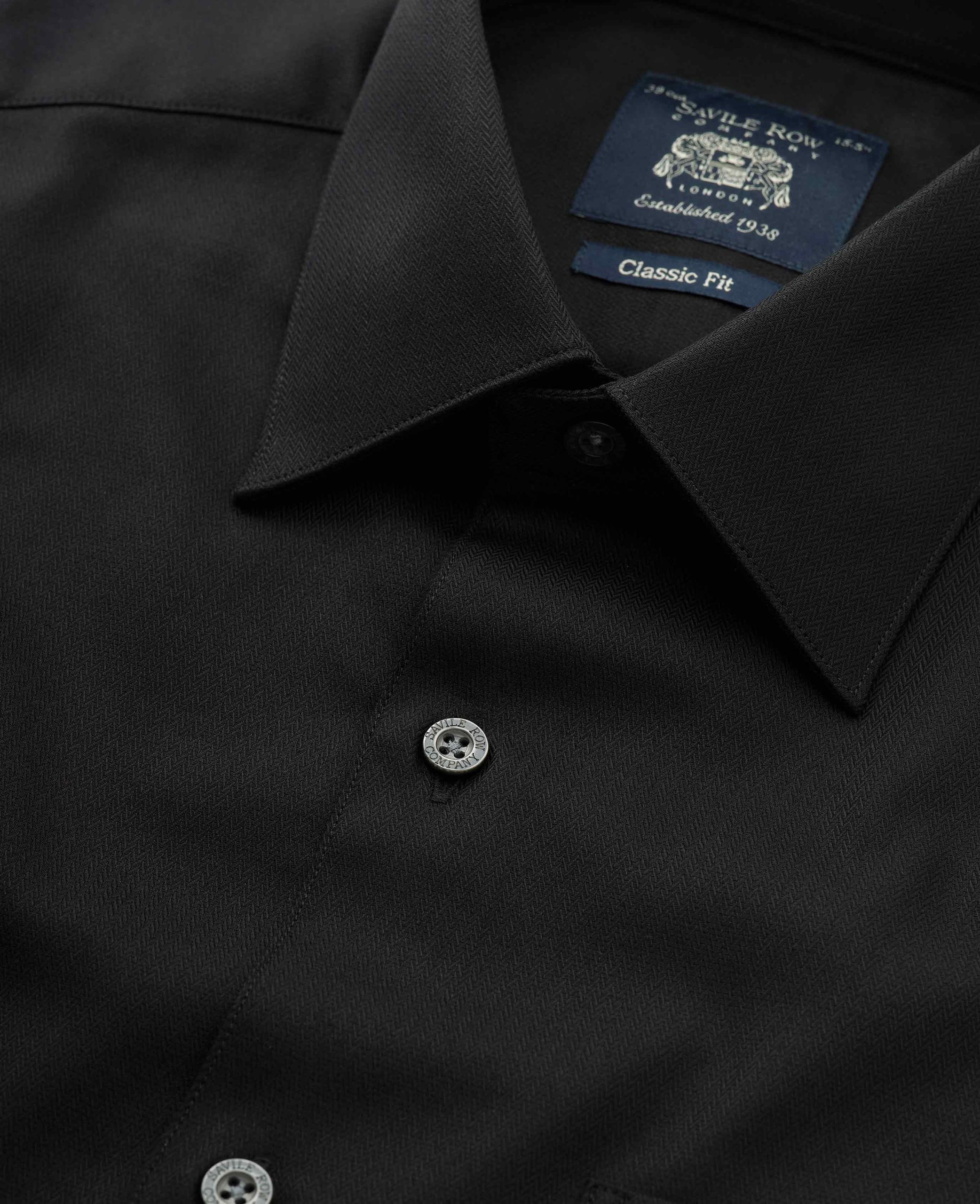 An elegant option, this men’s black shirt is great for creating a sleek formal look. Cut to a classic fit shape from pure cotton, it boasts a subtle herringbone pattern and texture that’s sure to impress at business events, weddings and parties. The classic fit shape is generously sized to accommodate larger builds.
