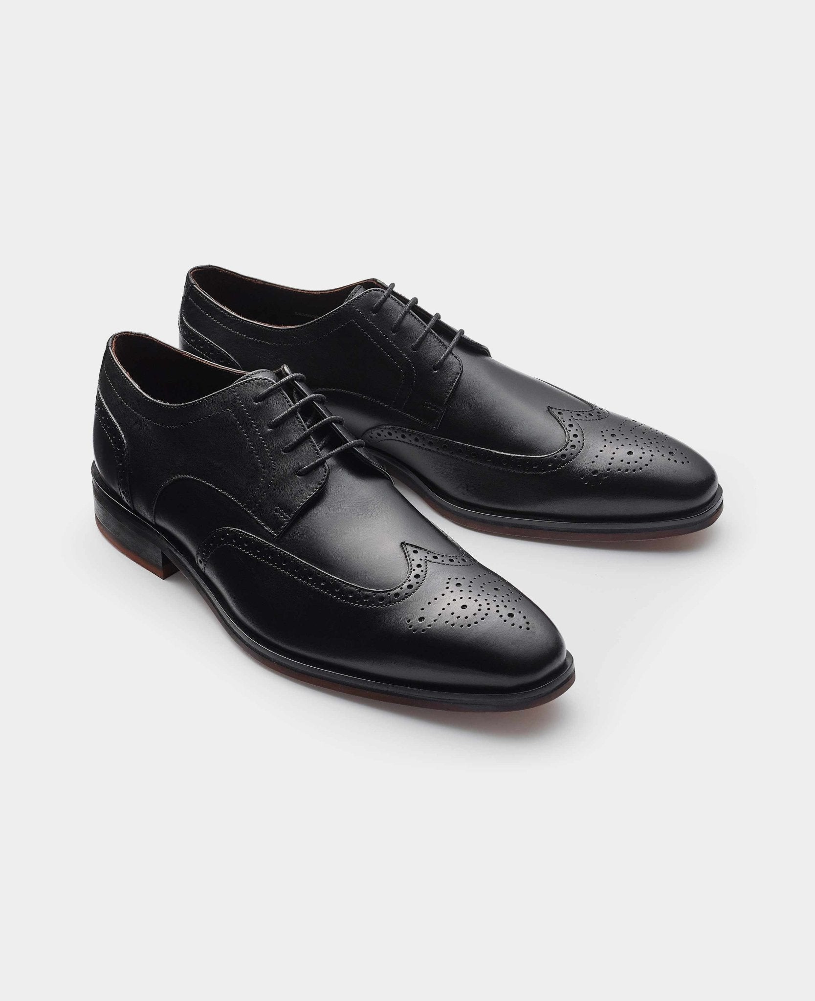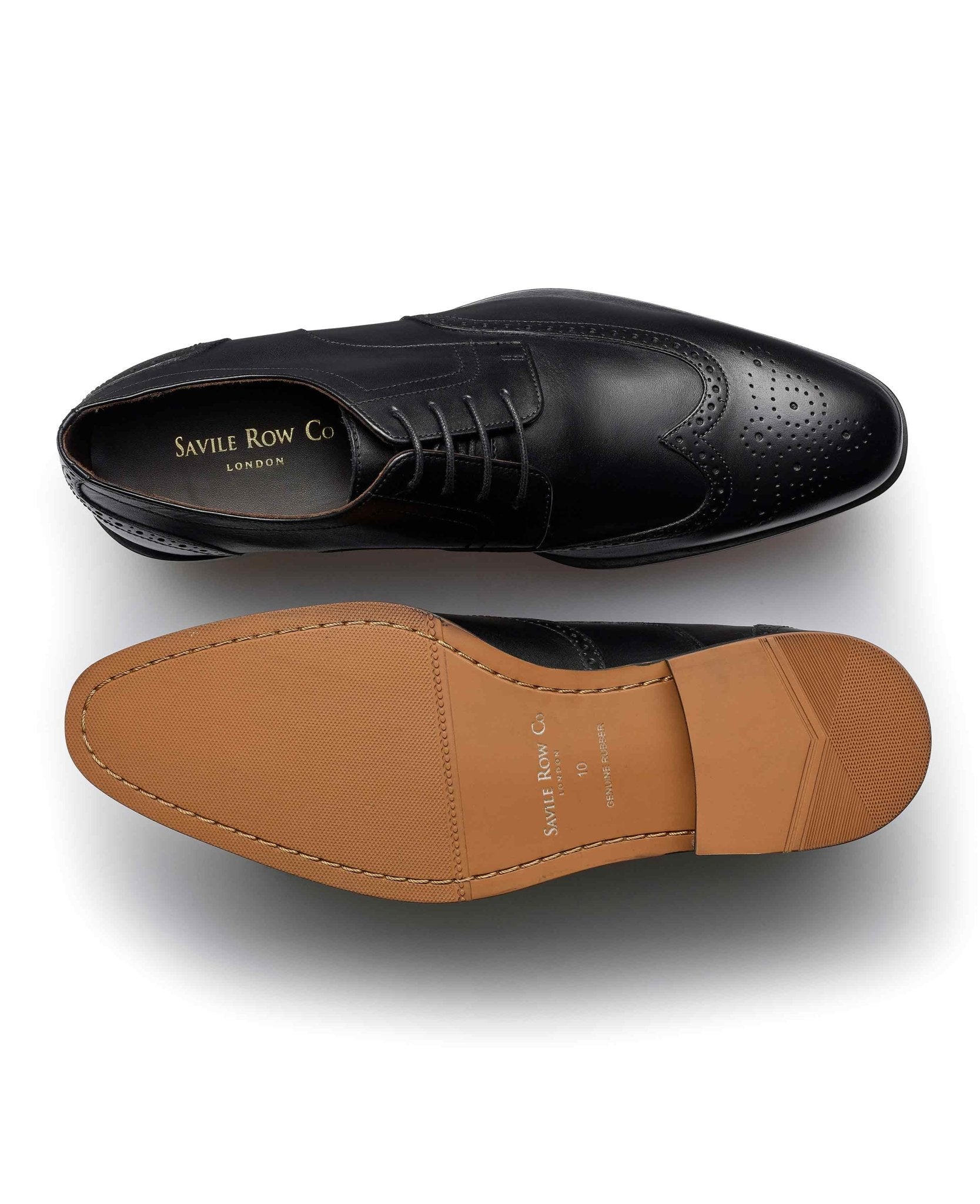 Classic. Versatile. Effortlessly sharp. These black brogue-style derby shoes are a go-to for when you want to look the part without compromising on comfort. Crafted from premium leather and hand-finished for a sleek, polished look. Inside, it’s all about ease and wearability. The Poron foam insole cushions every step with shock-absorbing support, while the super soft leather linings deliver all-day comfort and breathability. A genuine natural rubber sole adds flexibility and durability, while the modern almond-shaped last, developed in the UK, gives a clean profile that works across suits, tailored trousers or even smart denim. And with a slightly wider G fitting, they’re made to feel as good as they look.