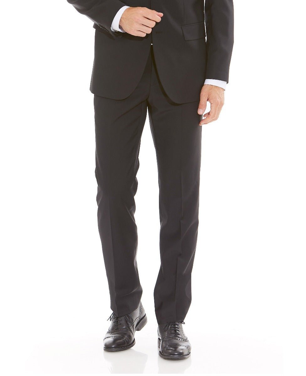 These classic black suit trousers are cut from a fine wool-blend in a comfortable straight-leg fit. Hardwearing and resistant to creases, they are a must-have for the morning commute.