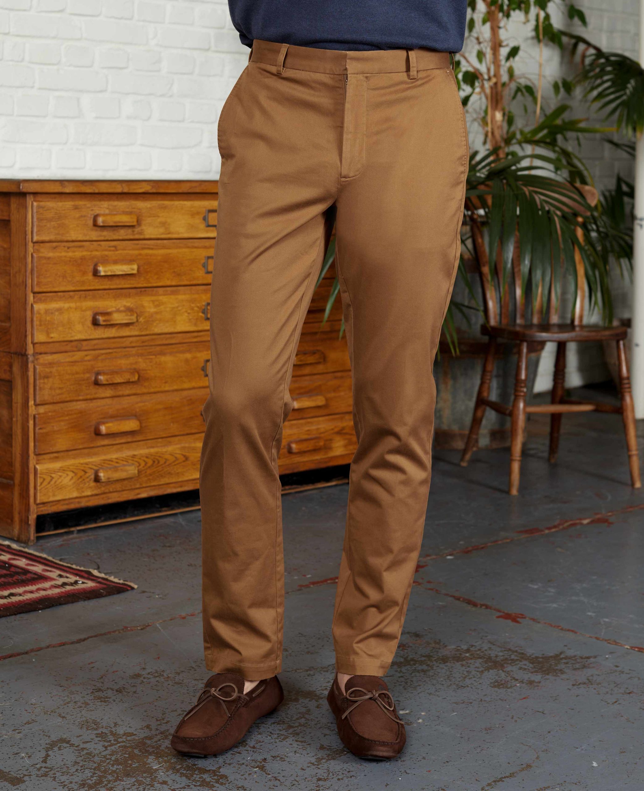 Savile Row Men’s Casual Cappuccino Brown Stretch Cotton Classic Fit Flat Front Chinos | Cappuccino