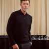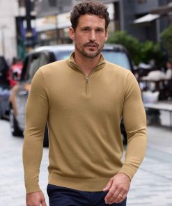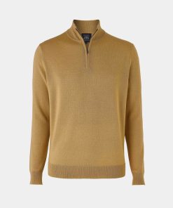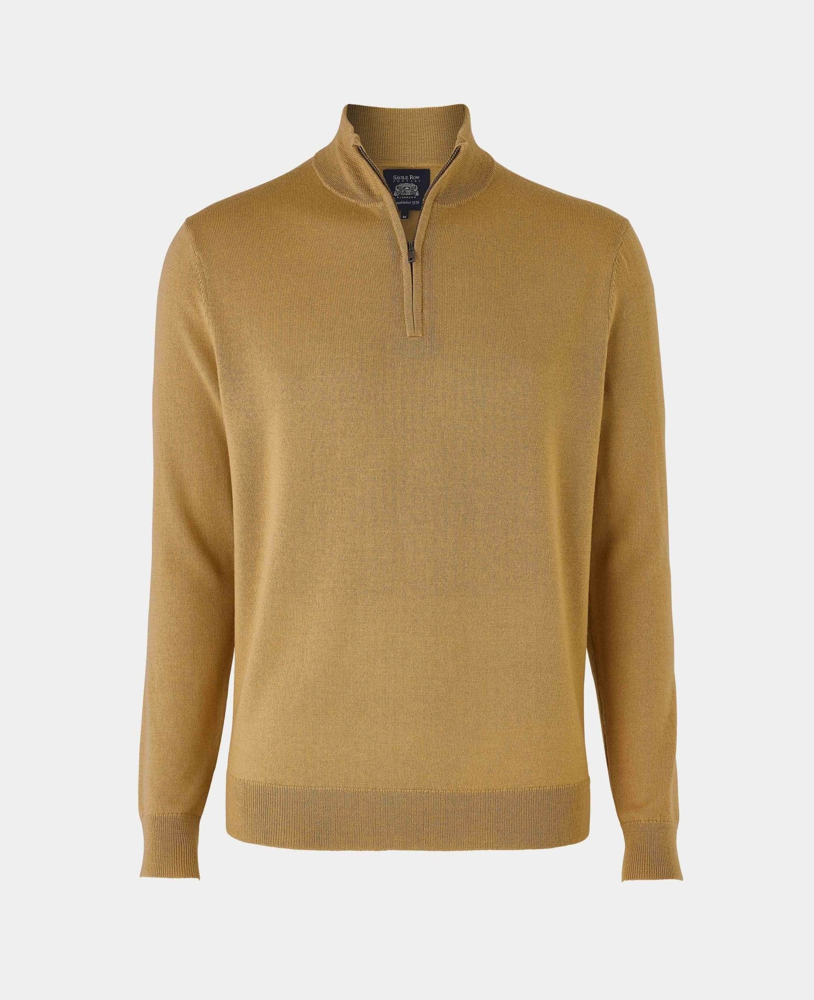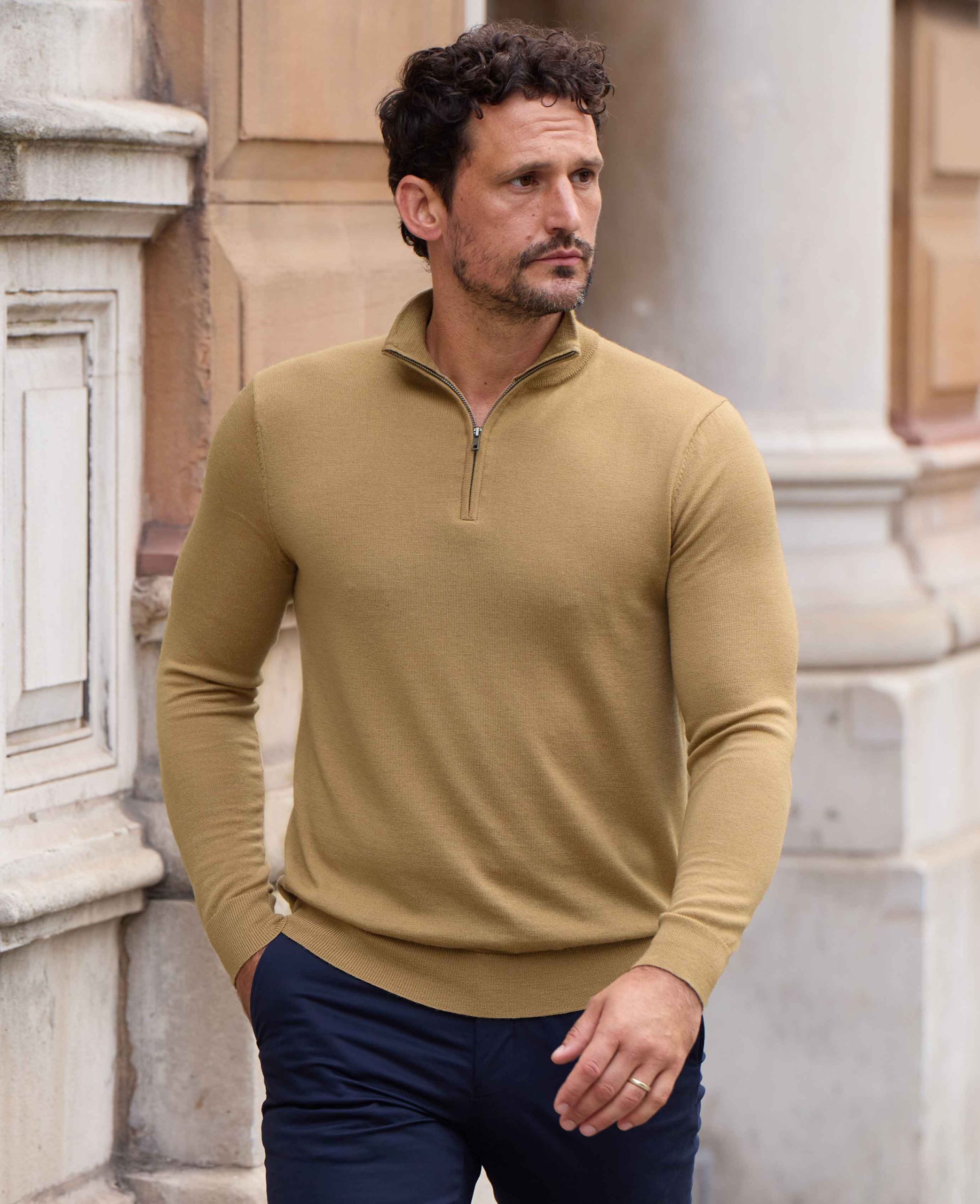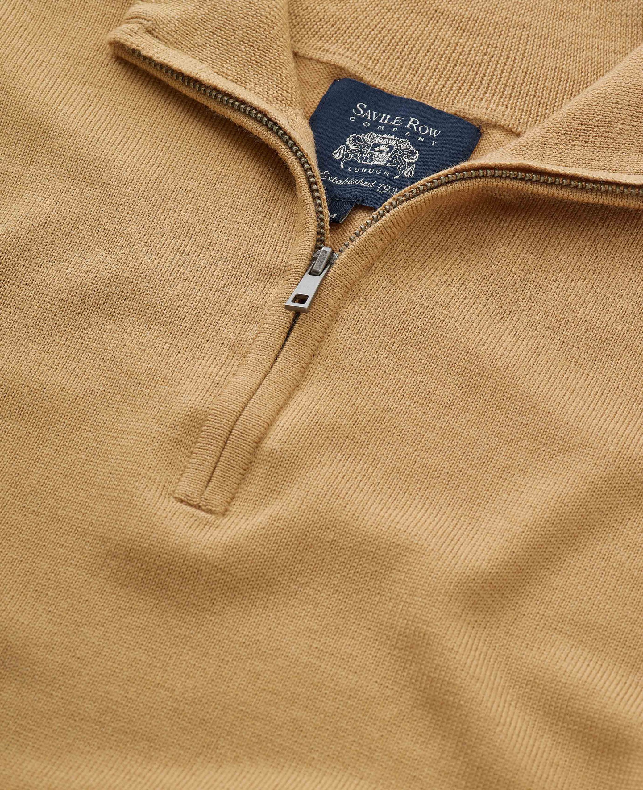 Savile Row Men’s Casual Tan Merino Wool Zip Neck Jumper | Tan