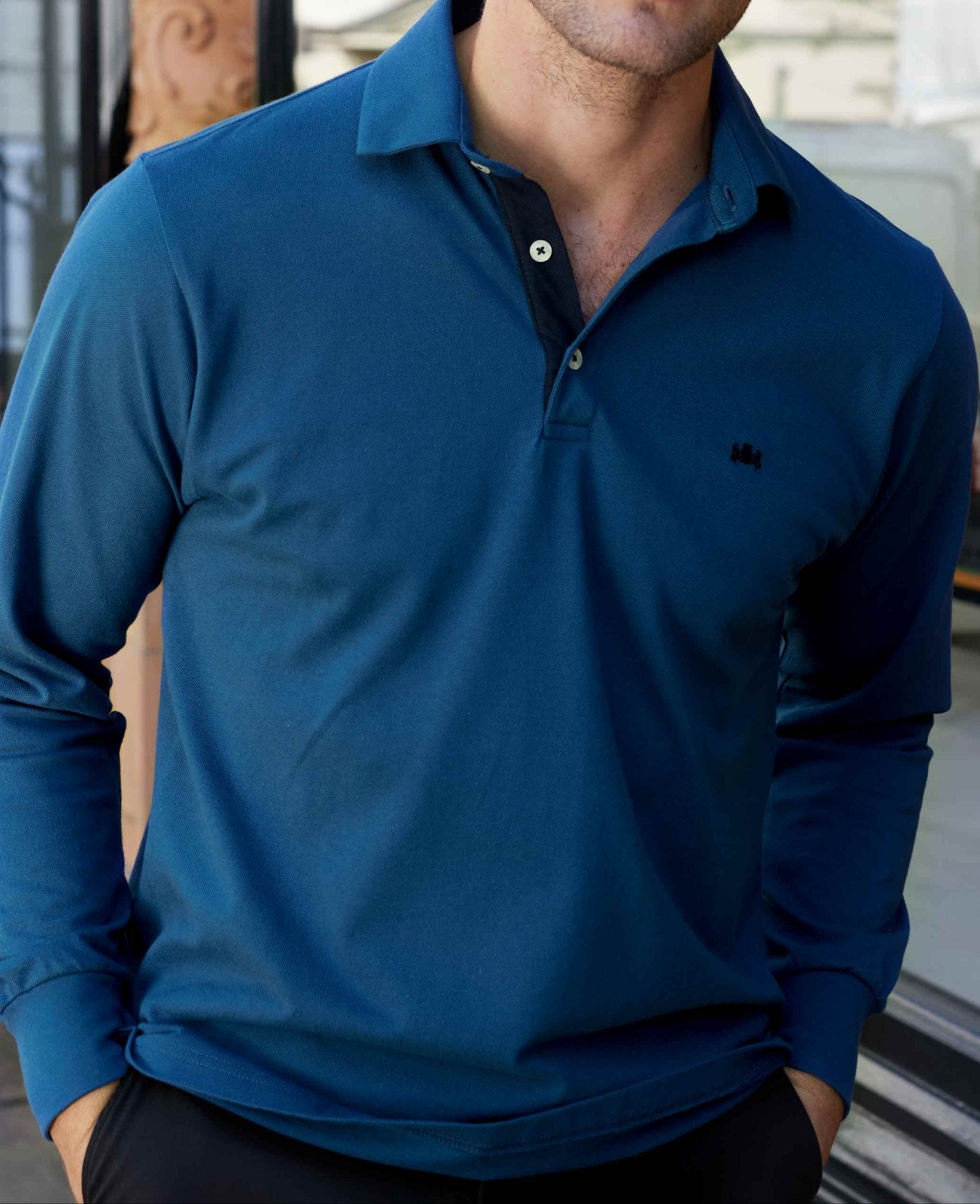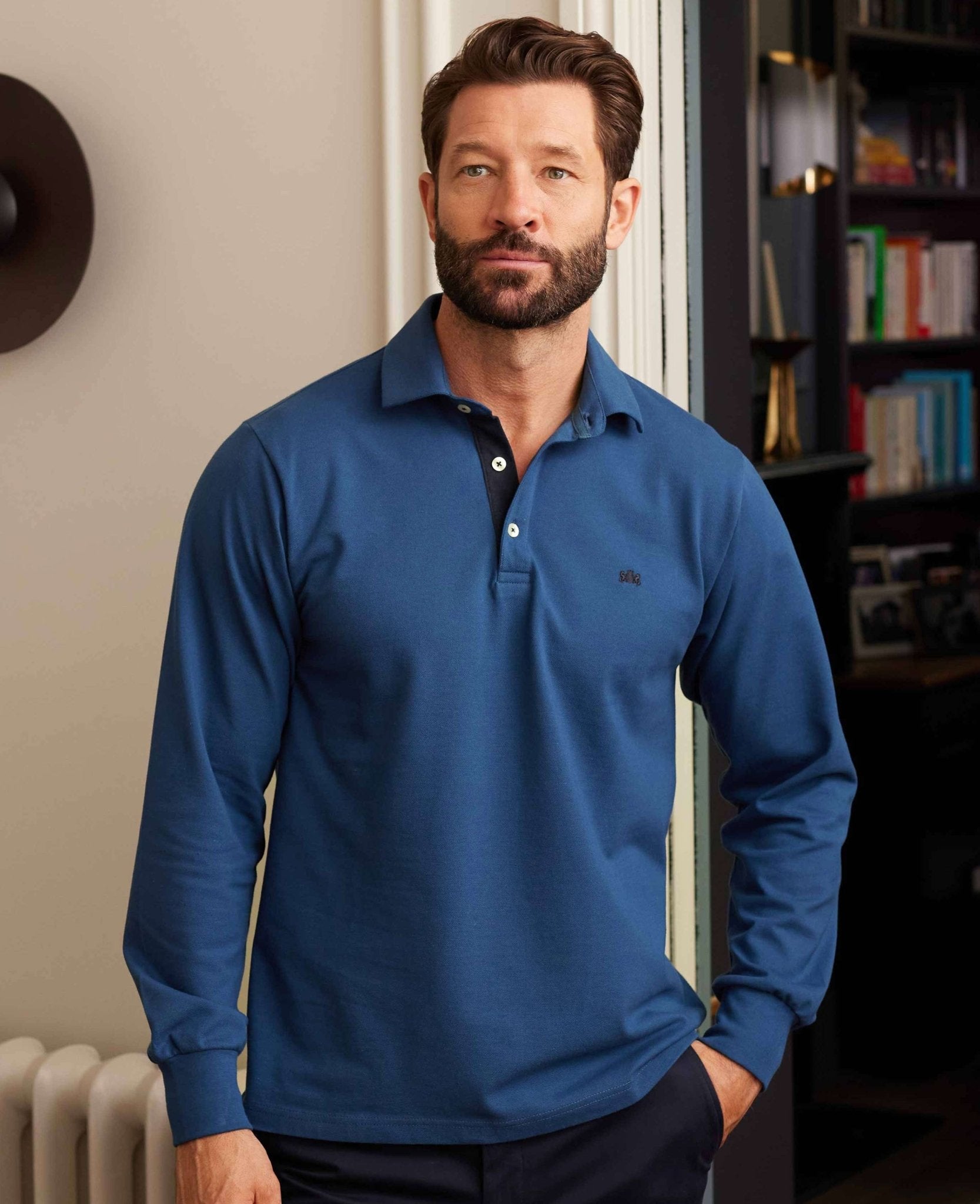 Our long-sleeved polos are a versatile addition to your smart-casual collection-proving a popular choice for weekends, working from home and dress-down Fridays. This version in denim blue has been made from a soft cotton-pique fabric in a classic fit for optimum comfort. There’s contrast detailing on the inside neck placket, while our trademark crest embroidery and herringbone side slits finish things off.