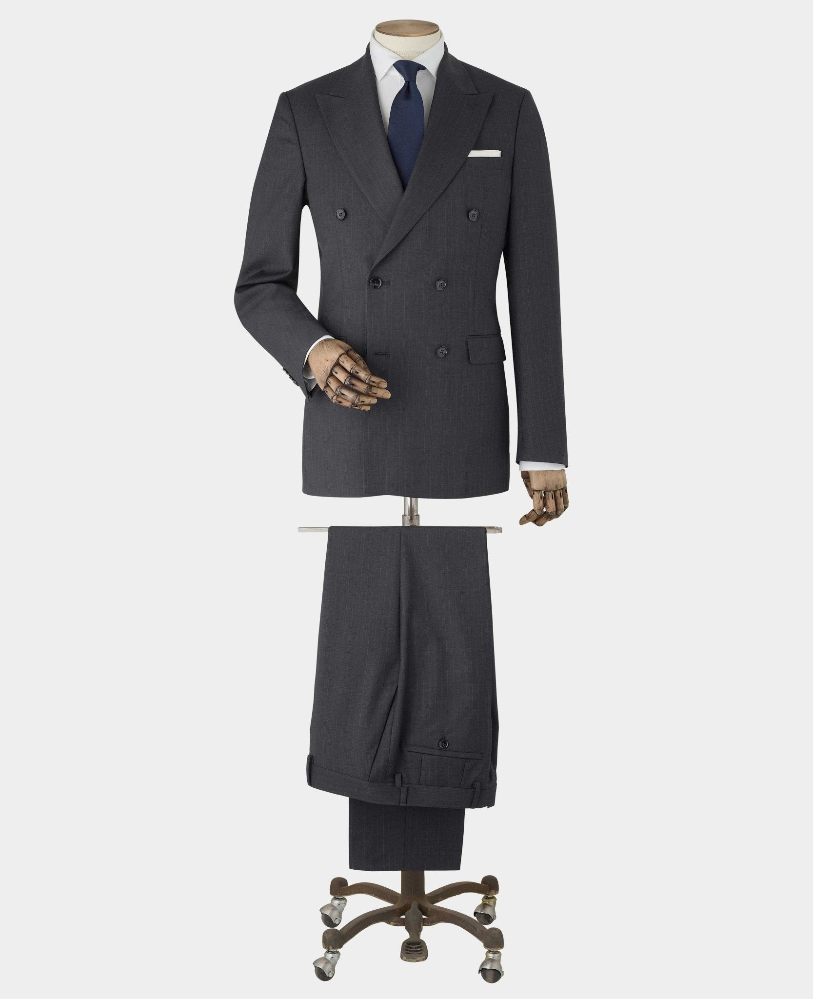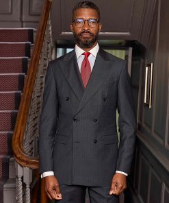 Make a powerful impression in this timeless grey chalk stripe double-breasted suit, a classic of British tailoring. With its vertical stripes and tailored fit, this suit exudes quiet authority, making it an ideal choice for the boardroom, big presentations or formal occasions where presence matters. Crafted from a premium wool blend, it offers structure and drape without sacrificing comfort. The fine texture reflect the attention to detail and craftsmanship that runs deep in our DNA. Founded by a master tailor, Savile Row Company brings generations of expertise into every stitch, ensuring a fit and finish that goes the extra mile.