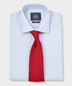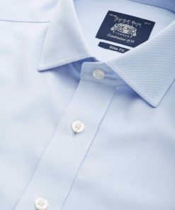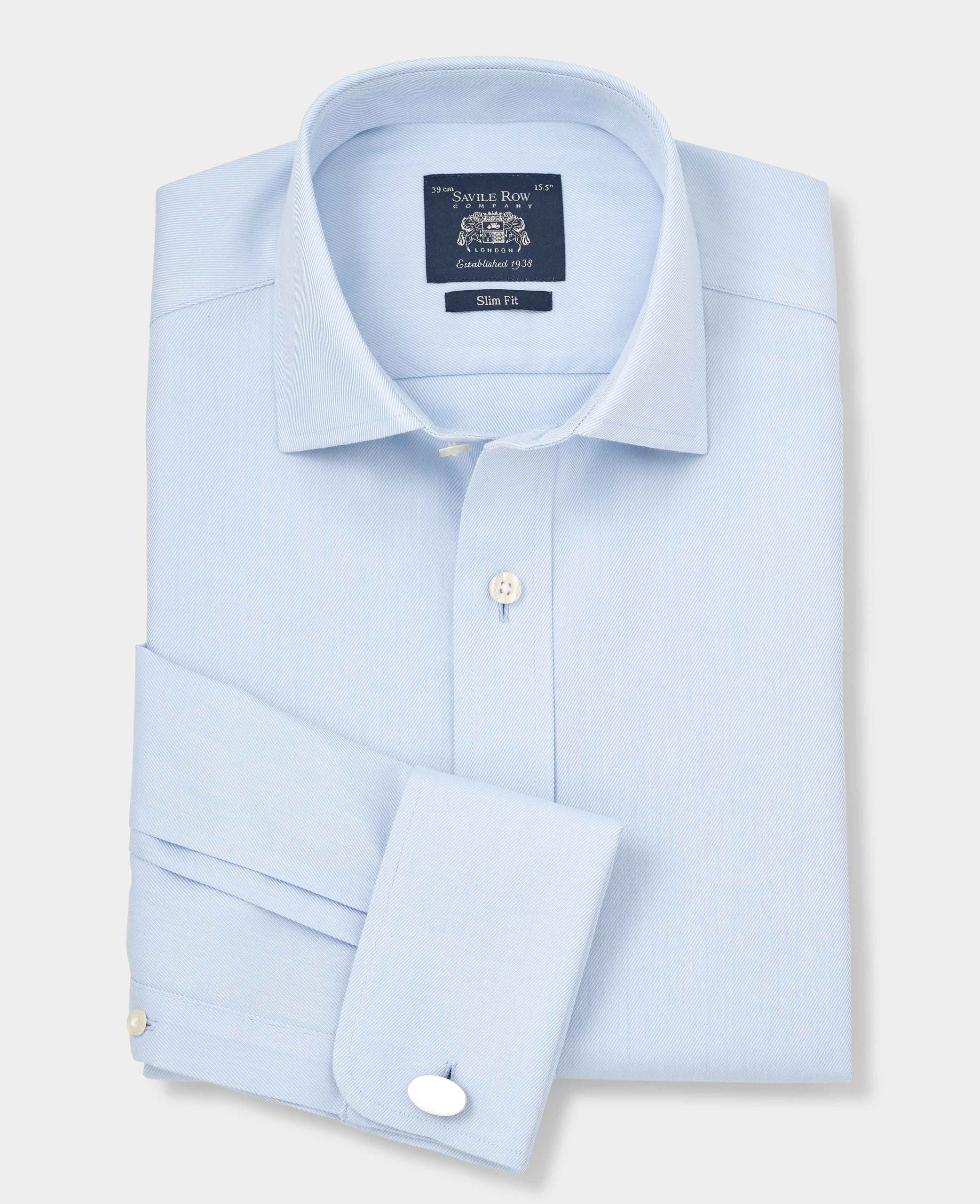 Elevate your style with this men’s light blue non-iron shirt, crafted from 100% non-iron cotton in a fine twill weave for a sophisticated look. It features a special construction that provides natural stretch without elastane, ensuring a perfect balance of comfort and mobility. The slim fit shape offers a flattering, gently tapered silhouette that complements all builds, while the curl-resistant cutaway collar with integral and removable collar stays adds a modern, polished touch. Designed with double cuffs for a formal edge, two back darts for a tailored shape, and pucker-free French-taped armhole seams, it’s the ultimate in both style and functionality.