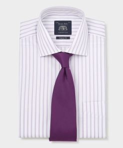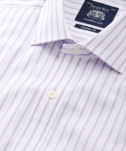This men’s striped shirt is a distinguished creation born from over 85 years of luxury shirt making expertise. Crafted from 100% BCI cotton, its smooth fabric boasts slightly textured stripes and an easy-iron finish, ensuring a look that remains impeccably crisp throughout the day. The curl-resistant cutaway collar, complete with an integral and removable collar stay, will easily accommodate a range of tie knots.