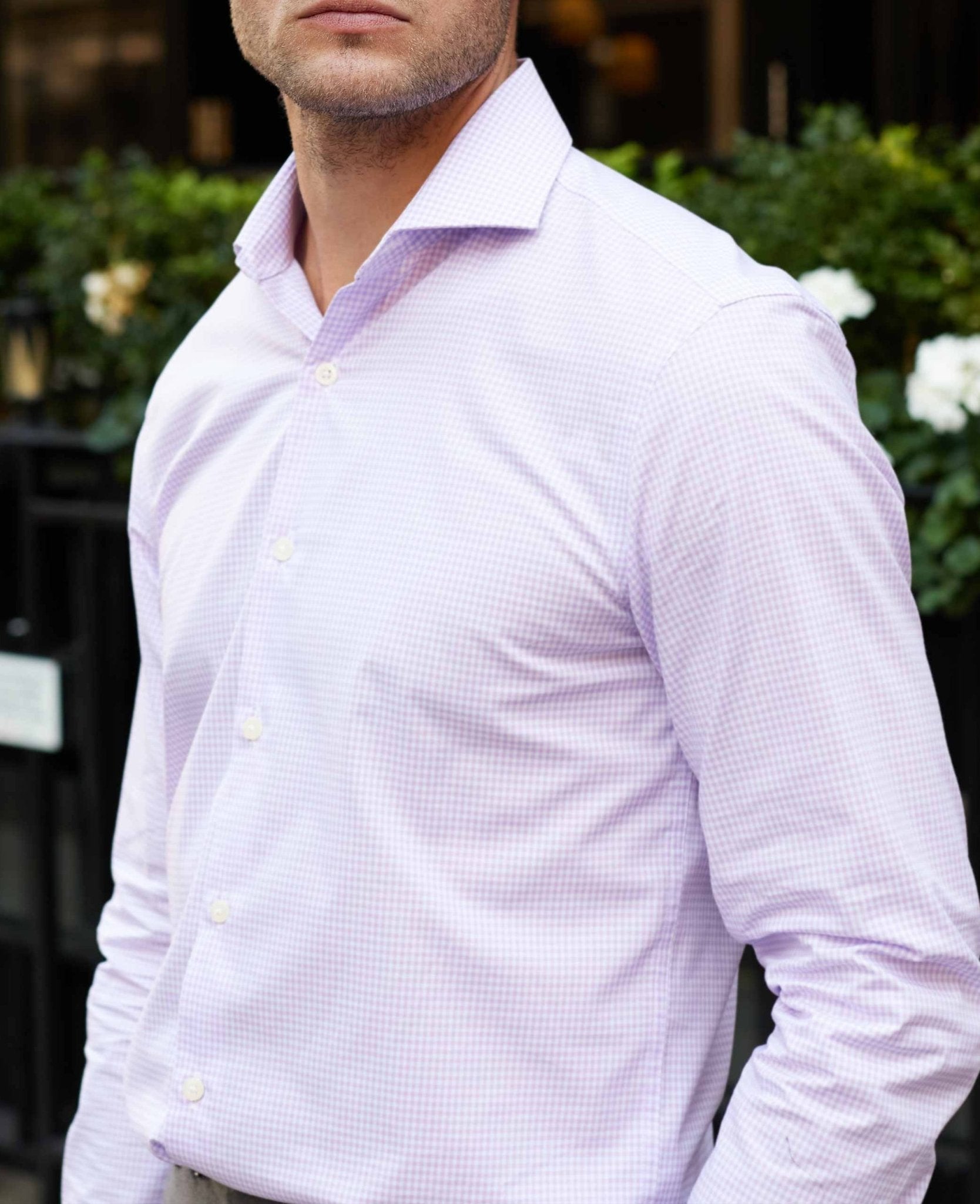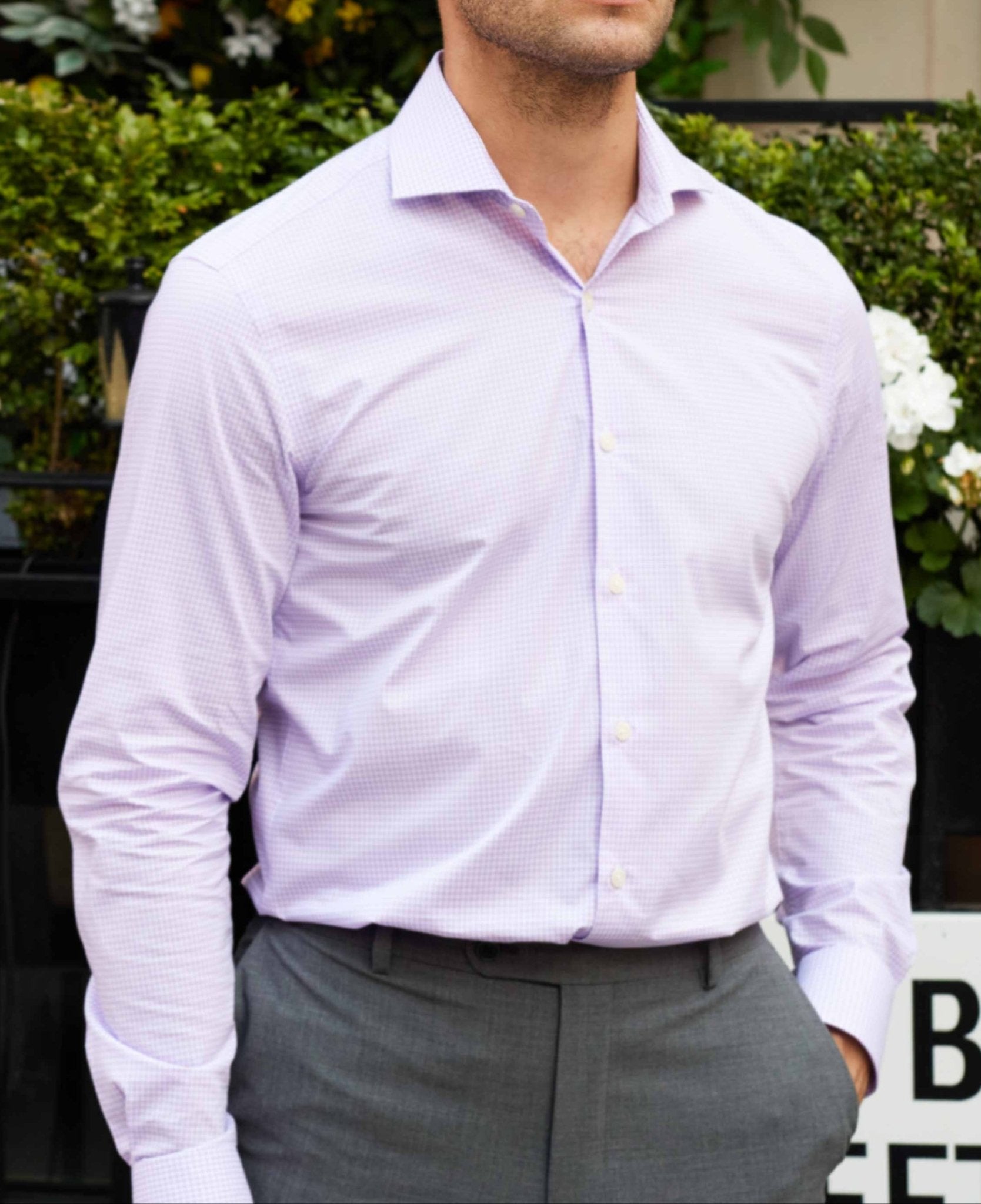 Introducing our bestselling gingham formal shirt in lilac – the perfect addition to your wardrobe for a sophisticated look. Crafted with meticulous attention to detail, this men’s shirt offers a sleek silhouette and a timeless design. We’ve updated the styling on this shirt to a fine edge – stitch along the collar and placket and curved cuffs – take a closer look at the refined finish.