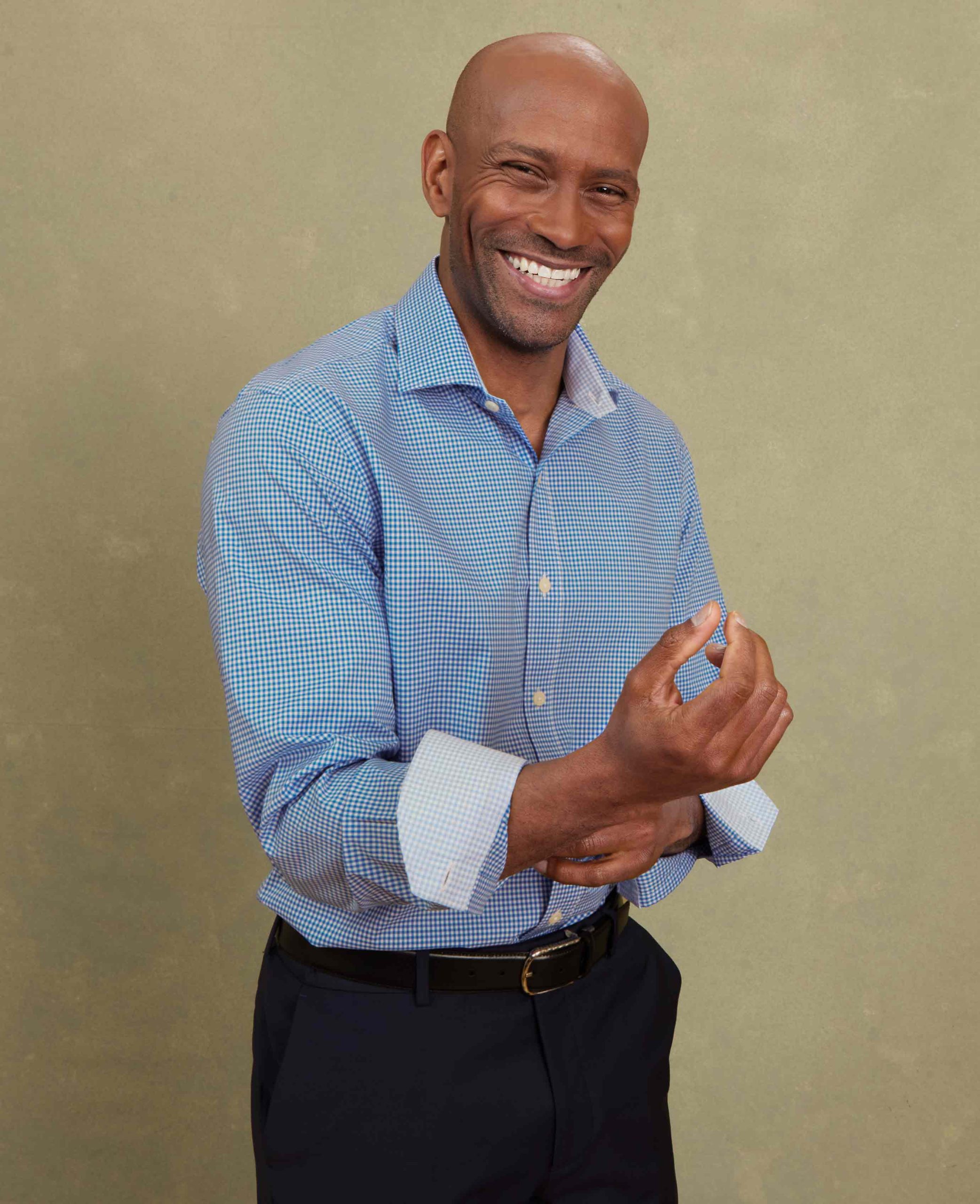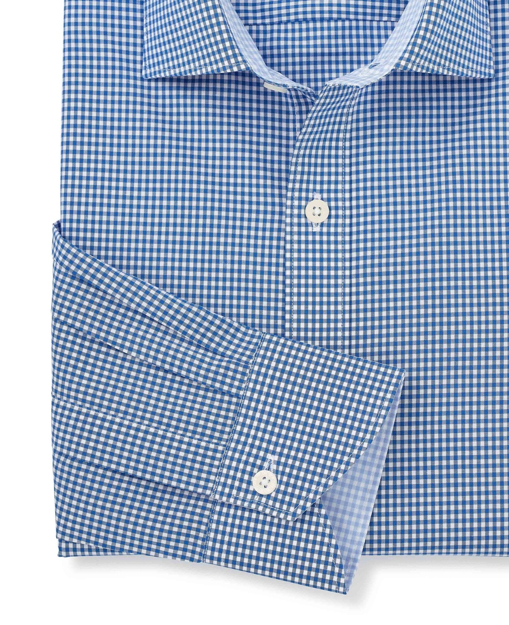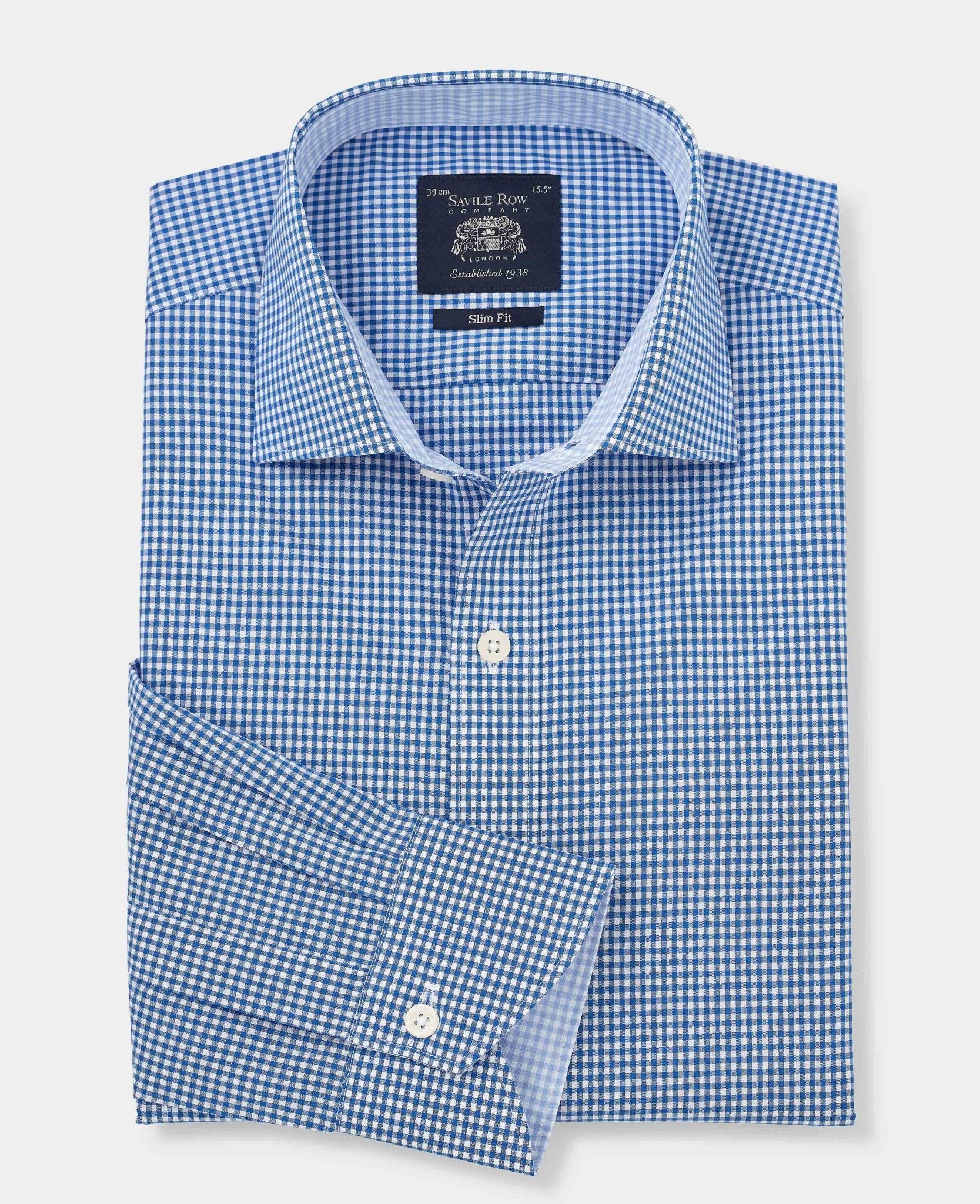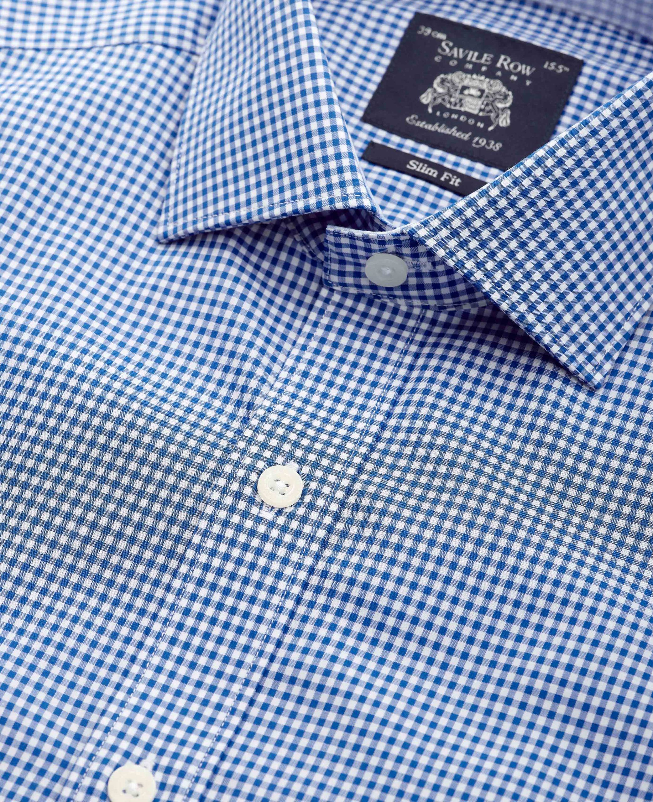 Our navy gingham formal shirt gives a sophisticated twist on a timeless pattern. Crafted from premium cotton poplin, it offers a smooth, crisp finish that feels light, breathable, and comfortable throughout the day. The fabric’s hypoallergenic properties make it gentle on the skin, while its breathable nature ensures you stay cool and fresh. The navy gingham pattern adds a touch of classic charm, while the slim fit provides a sharp, modern silhouette. Finished with curved single cuffs for a sleek, versatile look.