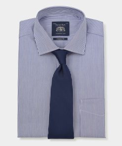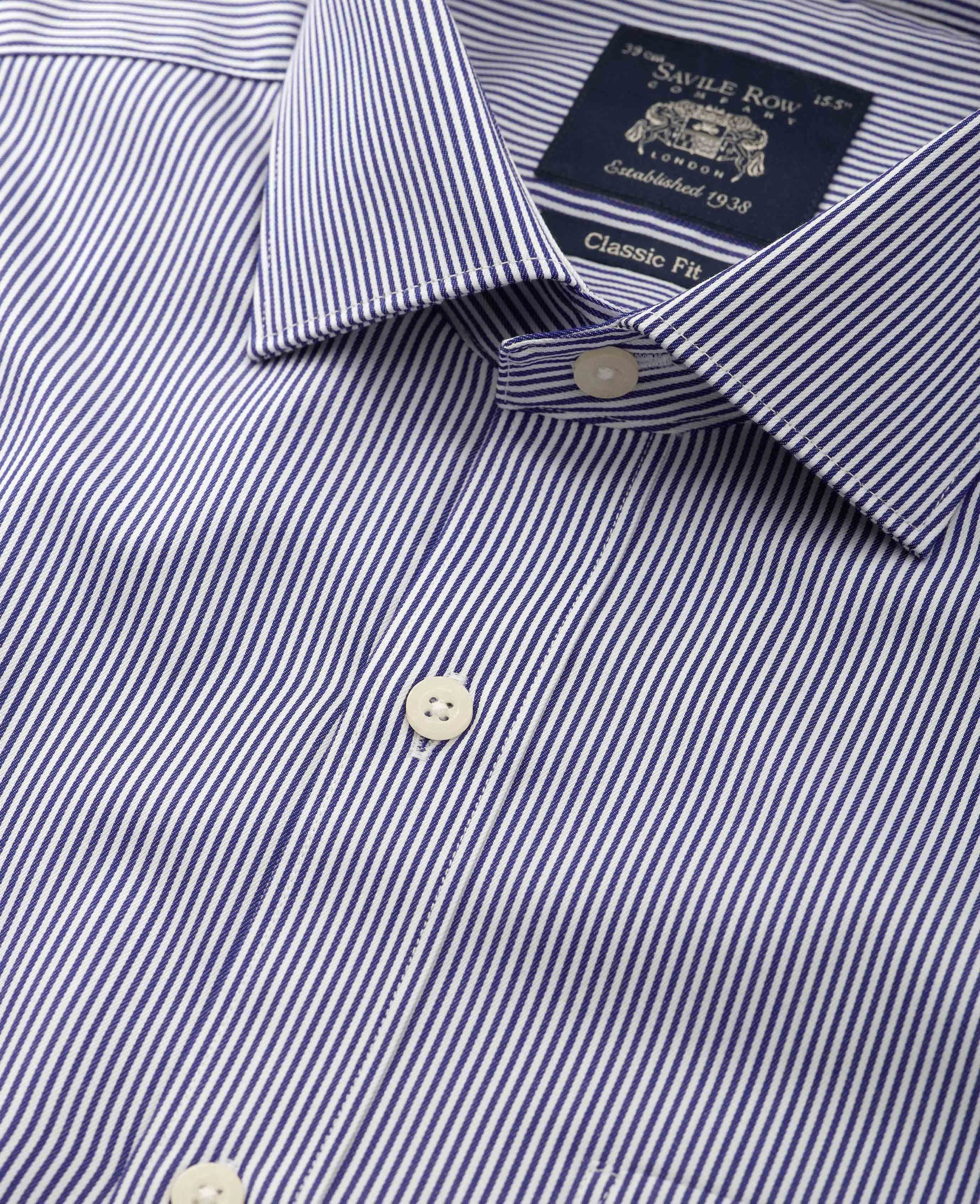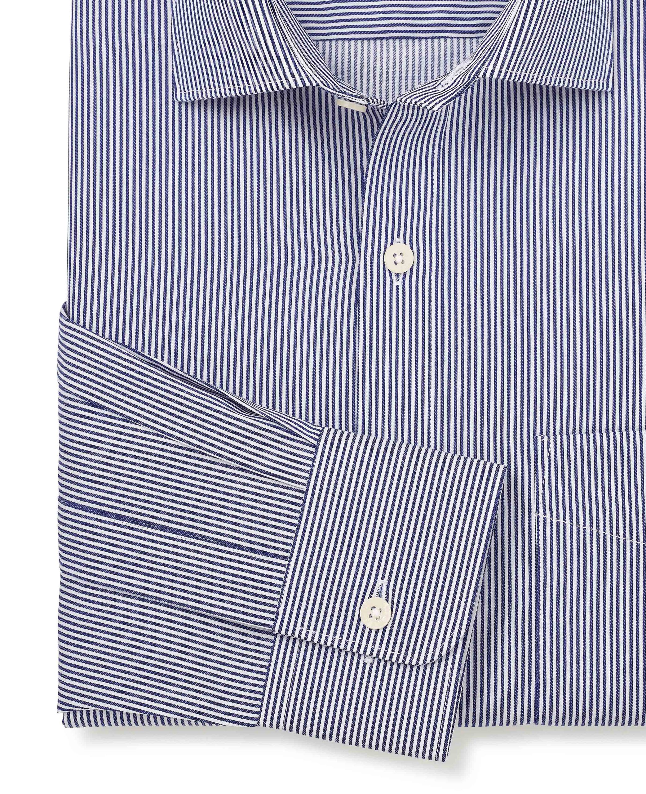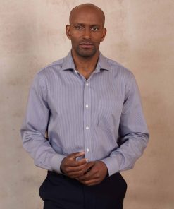 A timeless addition to any formal wardrobe. Crafted from high-quality cotton twill, this men’s shirt features a soft, textured fabric that adds depth and a touch of luxury. The classic fit ensures a comfortable, relaxed silhouette, while the subtle striped pattern gives it a sophisticated edge. Designed with a curl-resistant cutaway collar, it maintains a sharp, crisp look all day. Finished with single cuffs for a clean, versatile style.