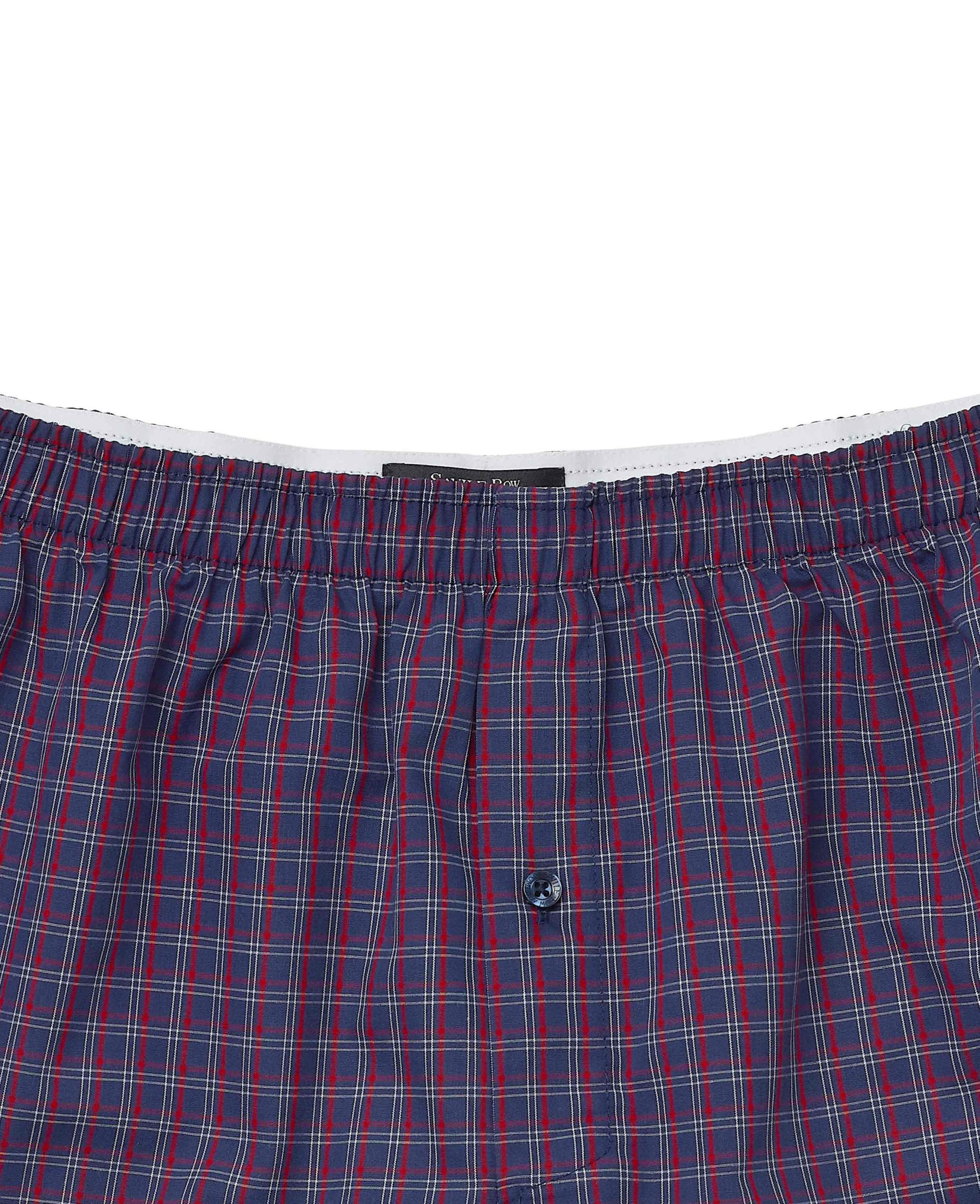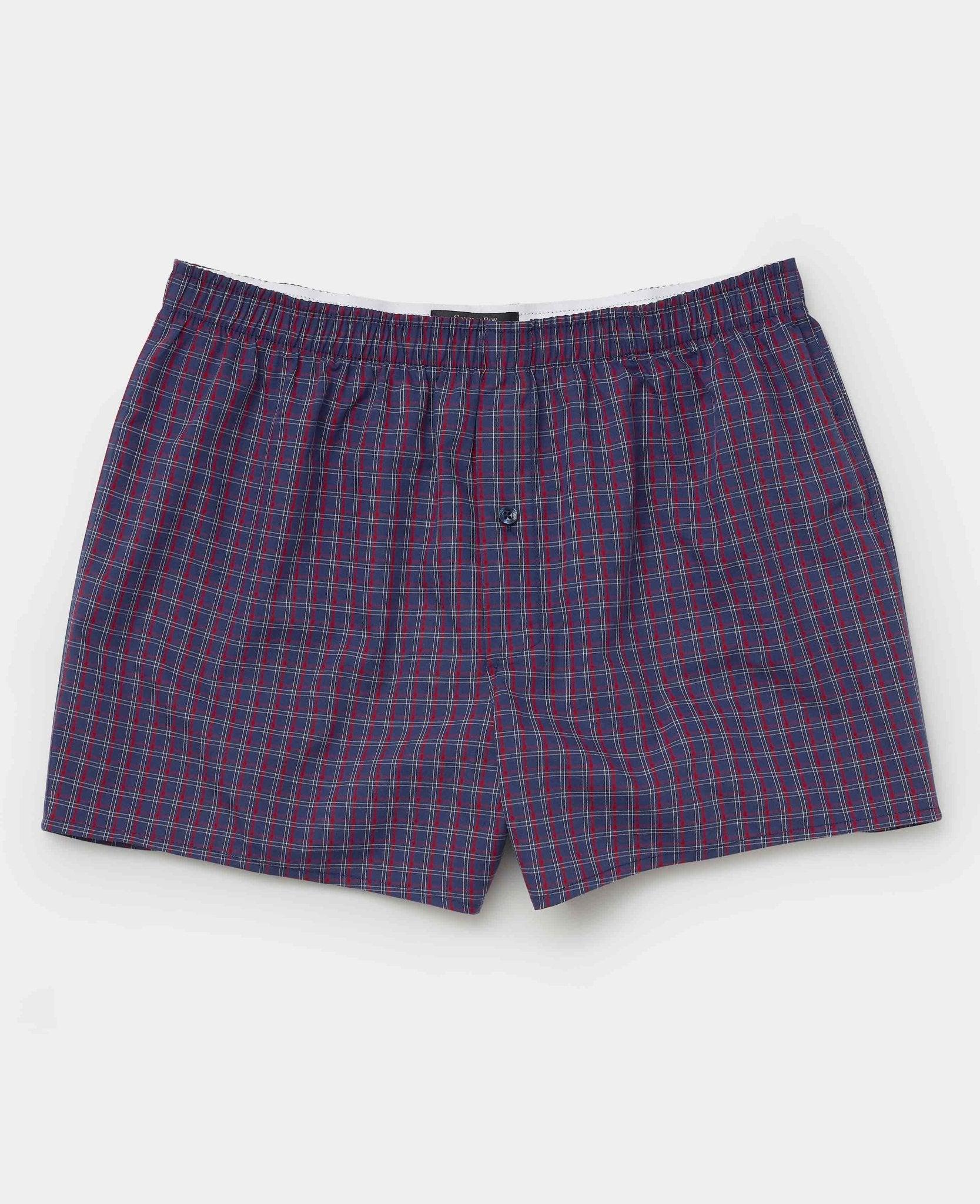 Savile Row Men’s Navy Red Check Cotton Boxer Shorts | Navy