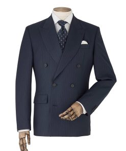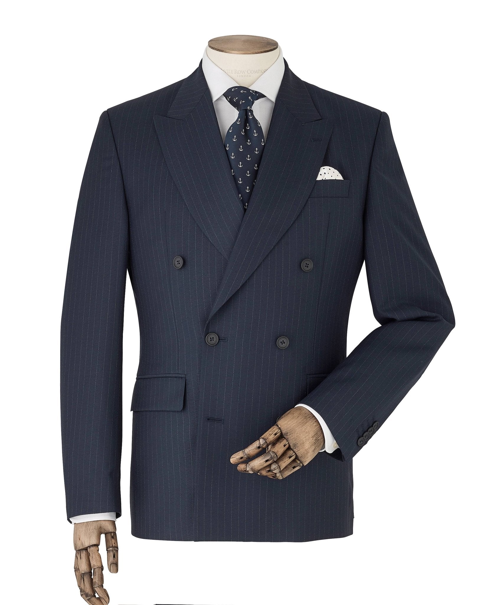 Cut to a flattering tailored fit, our double-breasted suit is delivered in a timeless navy with subtle stripes. It’s crafted in a wool-blend, which features a little stretch to allow optimum comfort and ease of movement. The contrast lining offers a dash of pzazz when you wear it to business events, weddings and parties.