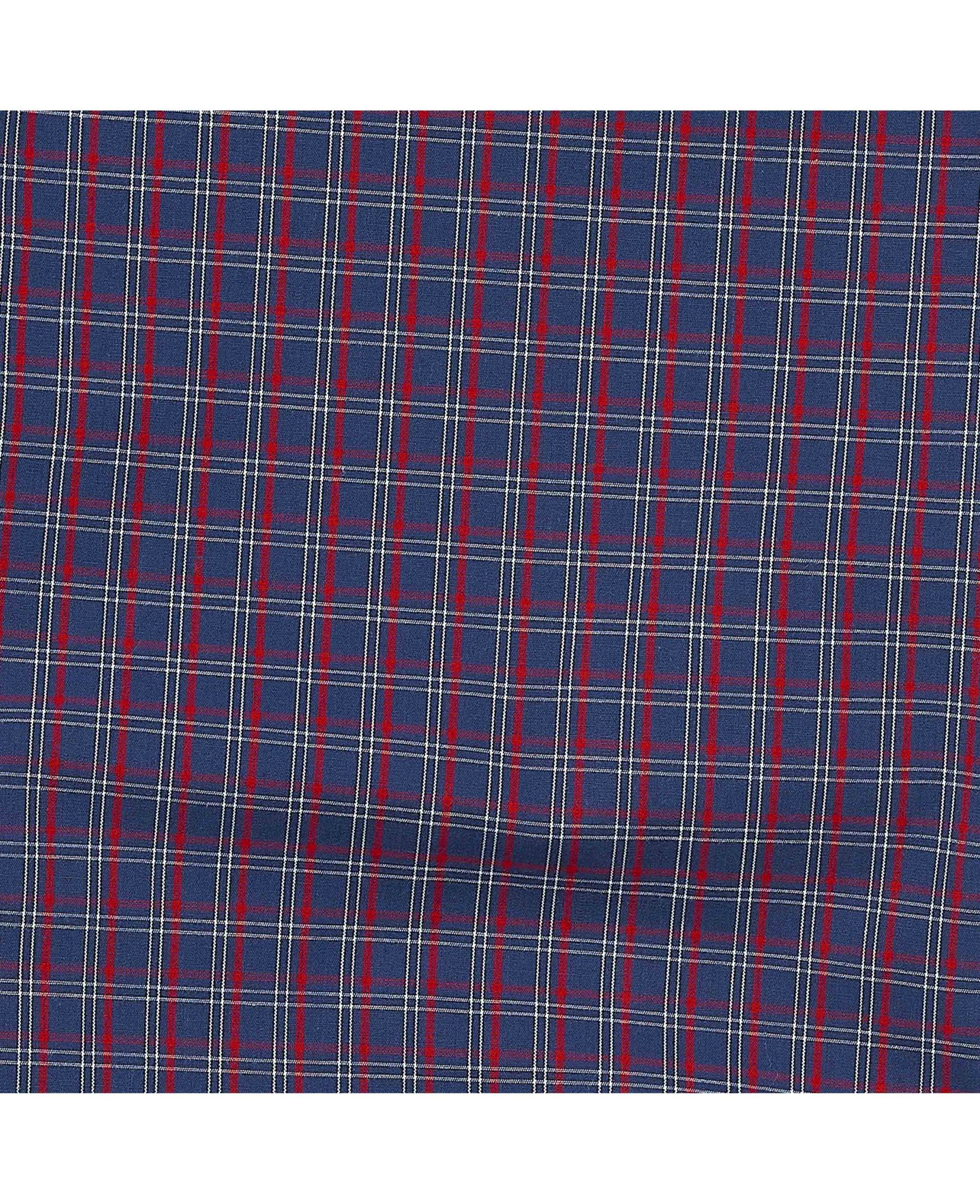 Elevate your loungewear with our navy and red check lounge pants. Made from 100% pure cotton poplin, they provide a seriously soft handle, perfect for relaxing at home. The fully elasticated waist features contrast herringbone detailing, ensuring a comfortable and adjustable fit. Designed with practicality in mind, they include a single back pocket adorned with an embroidered logo.