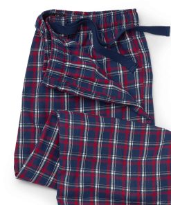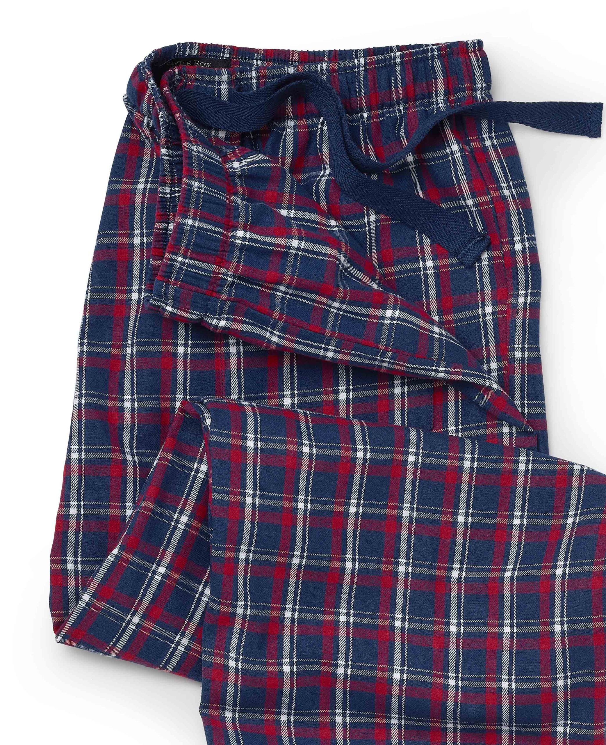 Savile Row Men’s Nightwear Red Navy White Check Brushed Cotton Lounge Pants | Red