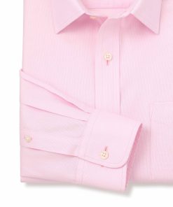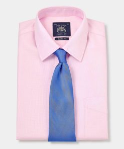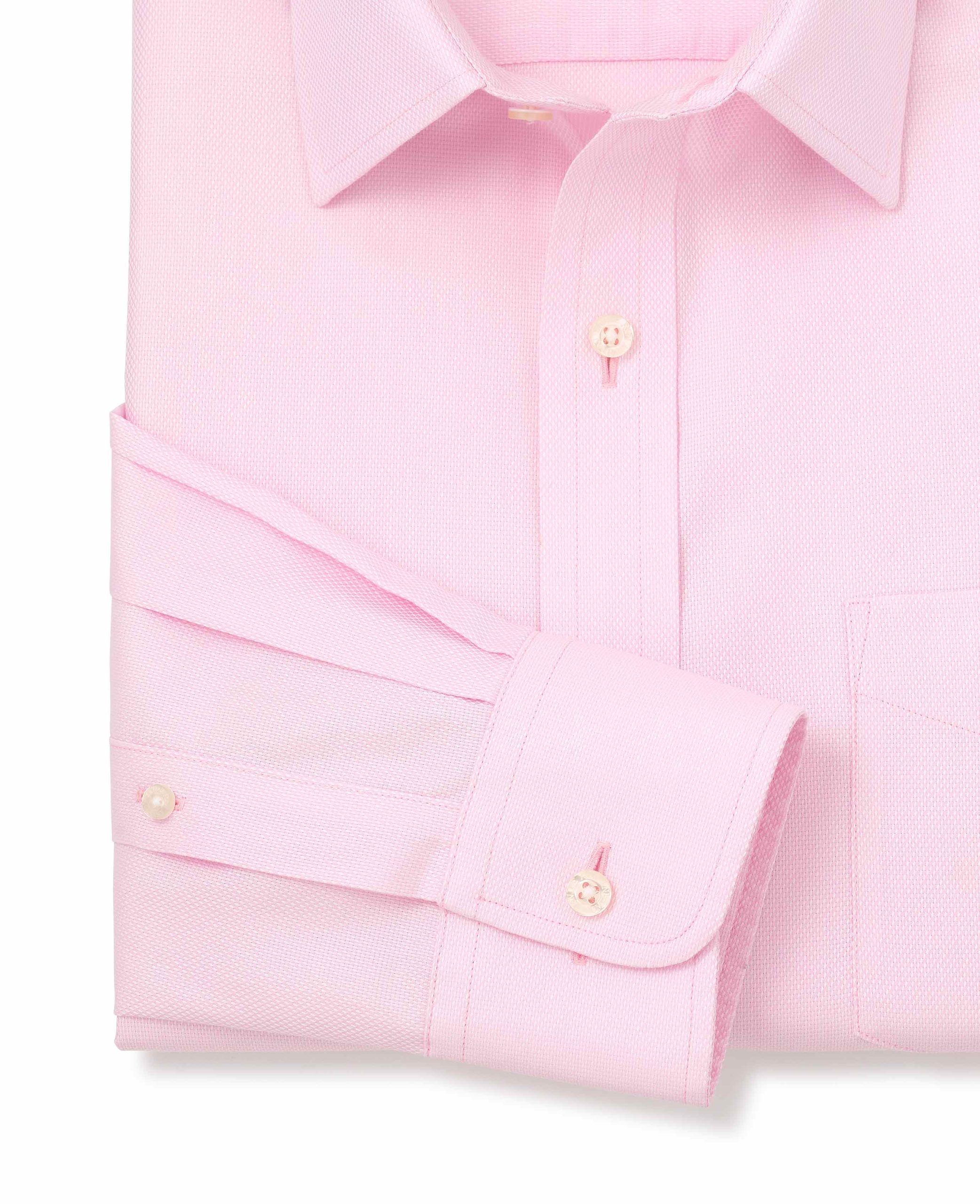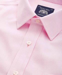 Our men’s pink non-iron shirt is a versatile wardrobe staple designed for both comfort and style. Made from 100% non-iron cotton in a luxurious Bahama dobby weave, it offers a polished look that stays crisp throughout the day – no ironing required. Its special construction provides natural stretch without the need for elastane, ensuring ease of movement while maintaining a structured silhouette.