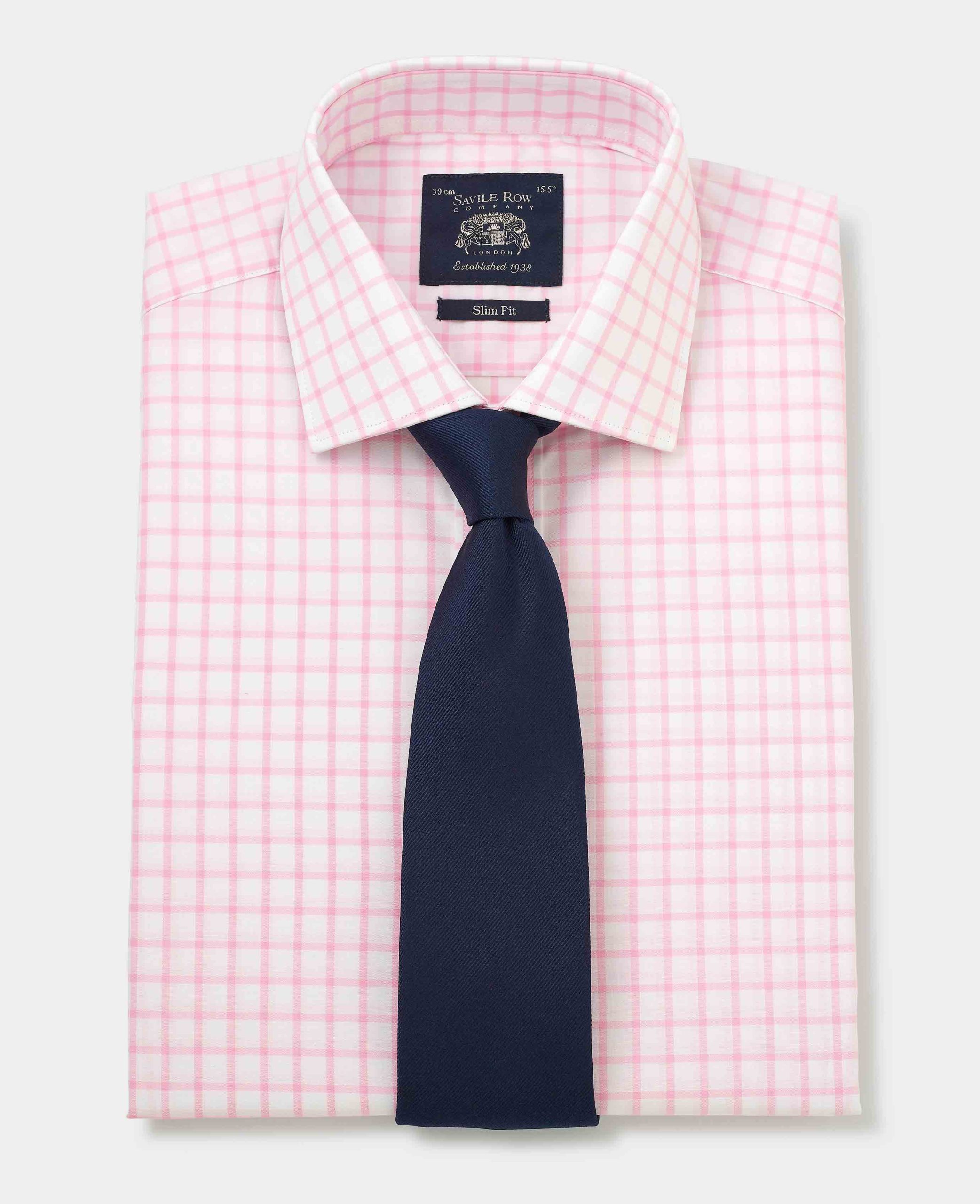 From the crispness of the cotton to the collar that doesn’t curl, this men’s formal shirt ticks all the right boxes. It’s cut to our slim fit shape and patterned with a versatile check design that looks just as good with navy suits as it does with grey.