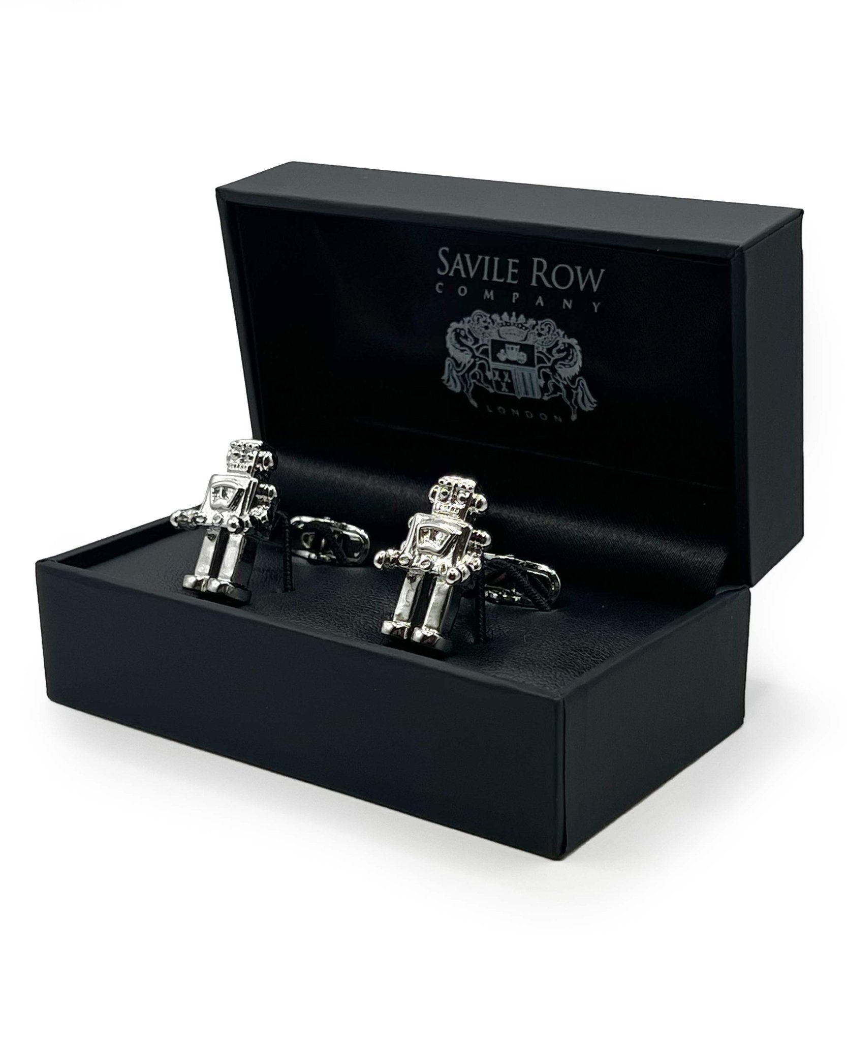 Inject a bit of playful charm into your formal wear with these novelty robot cufflinks. The quirky design is perfect for tech enthusiasts or those who like to show off their unique personality. With easy-to-use swivel back fittings and a sleek presentation box, they also make an ideal gift for men with a fun and modern edge.