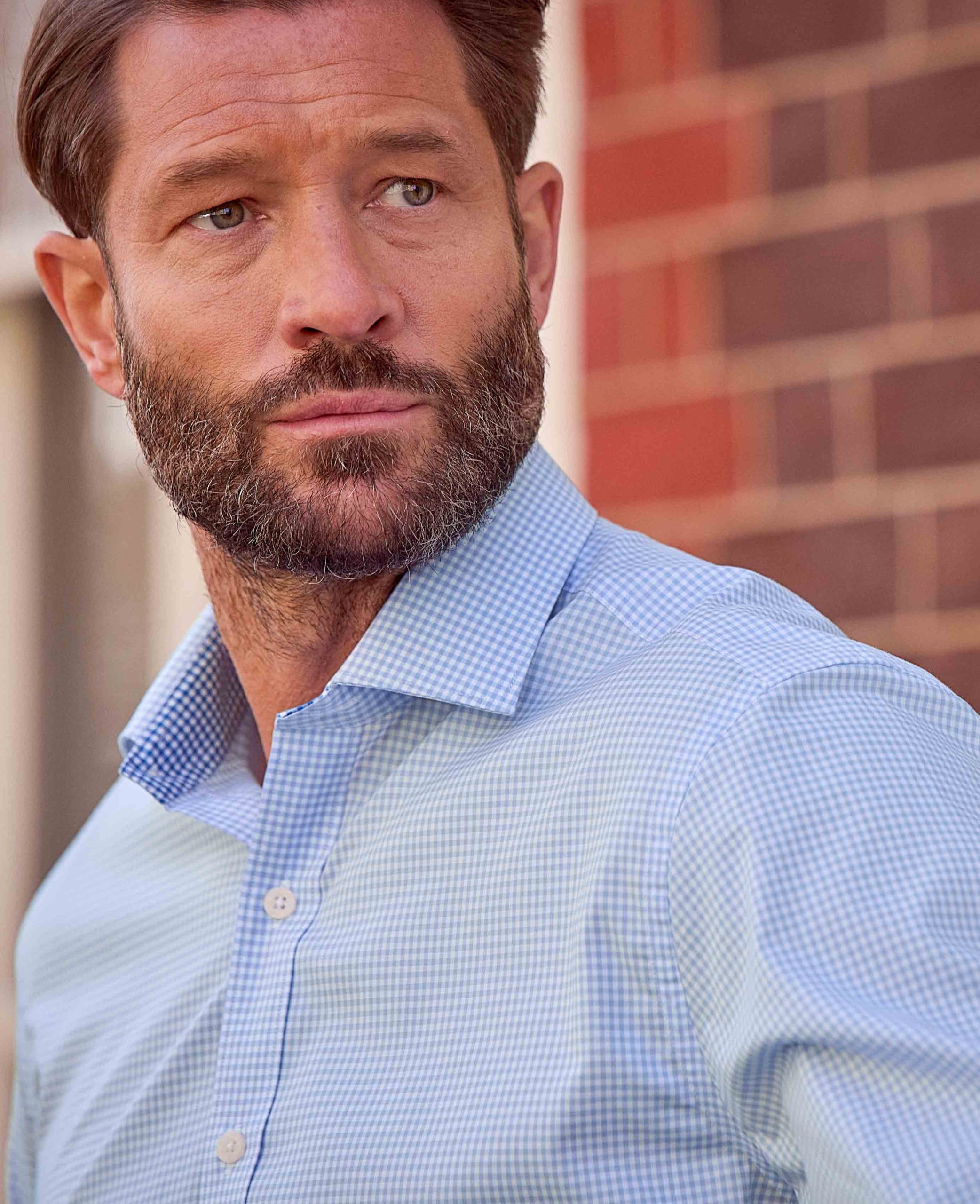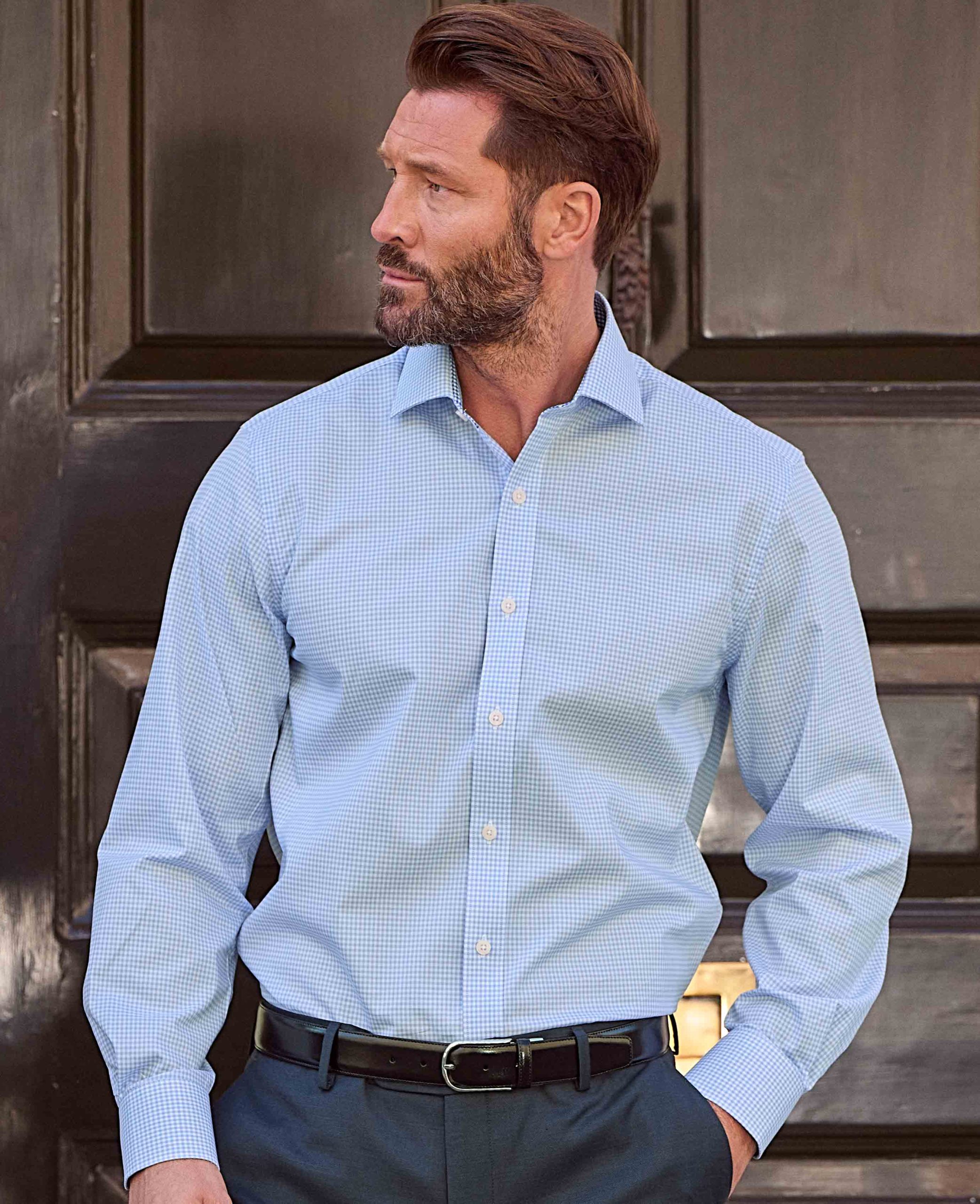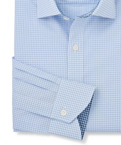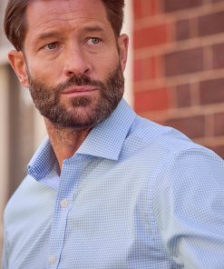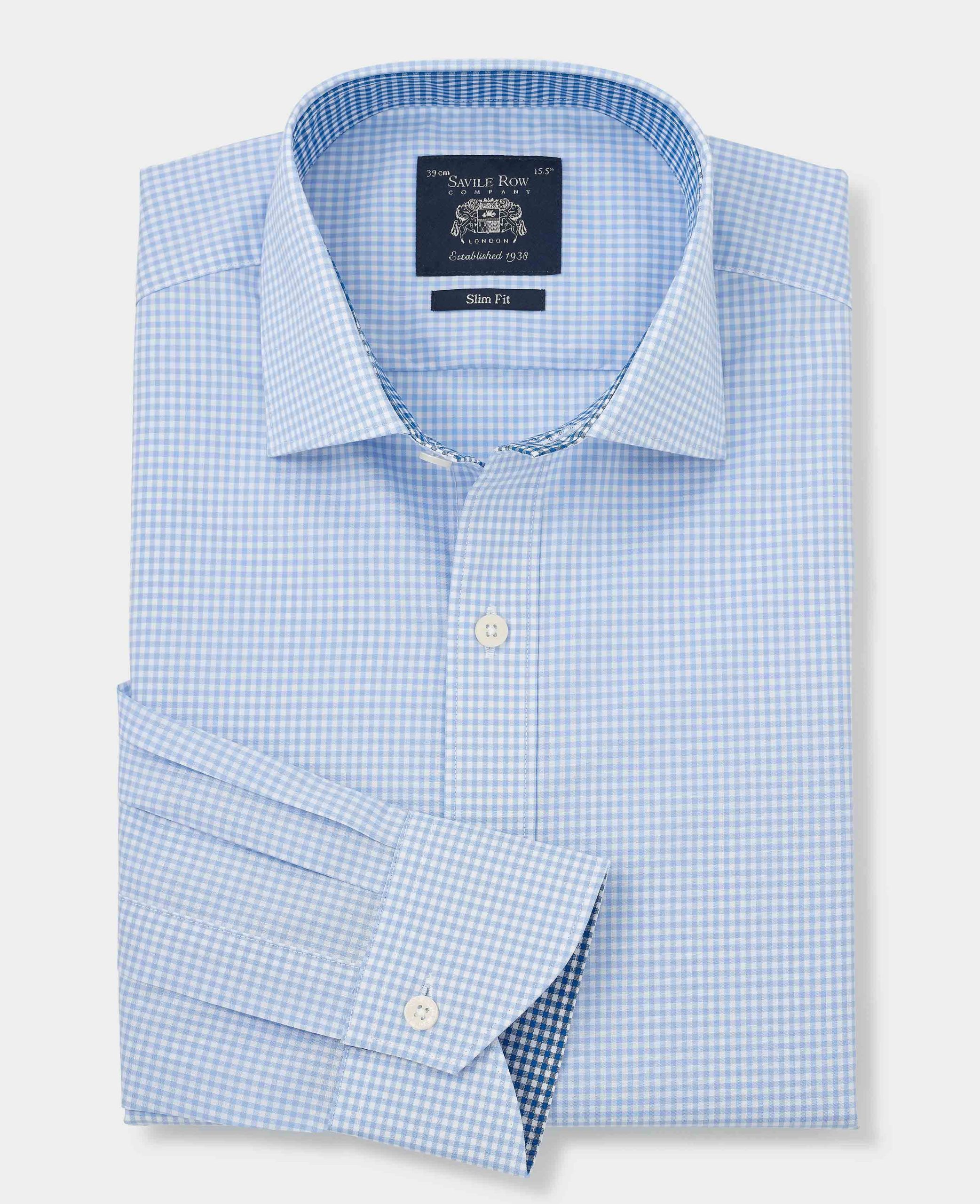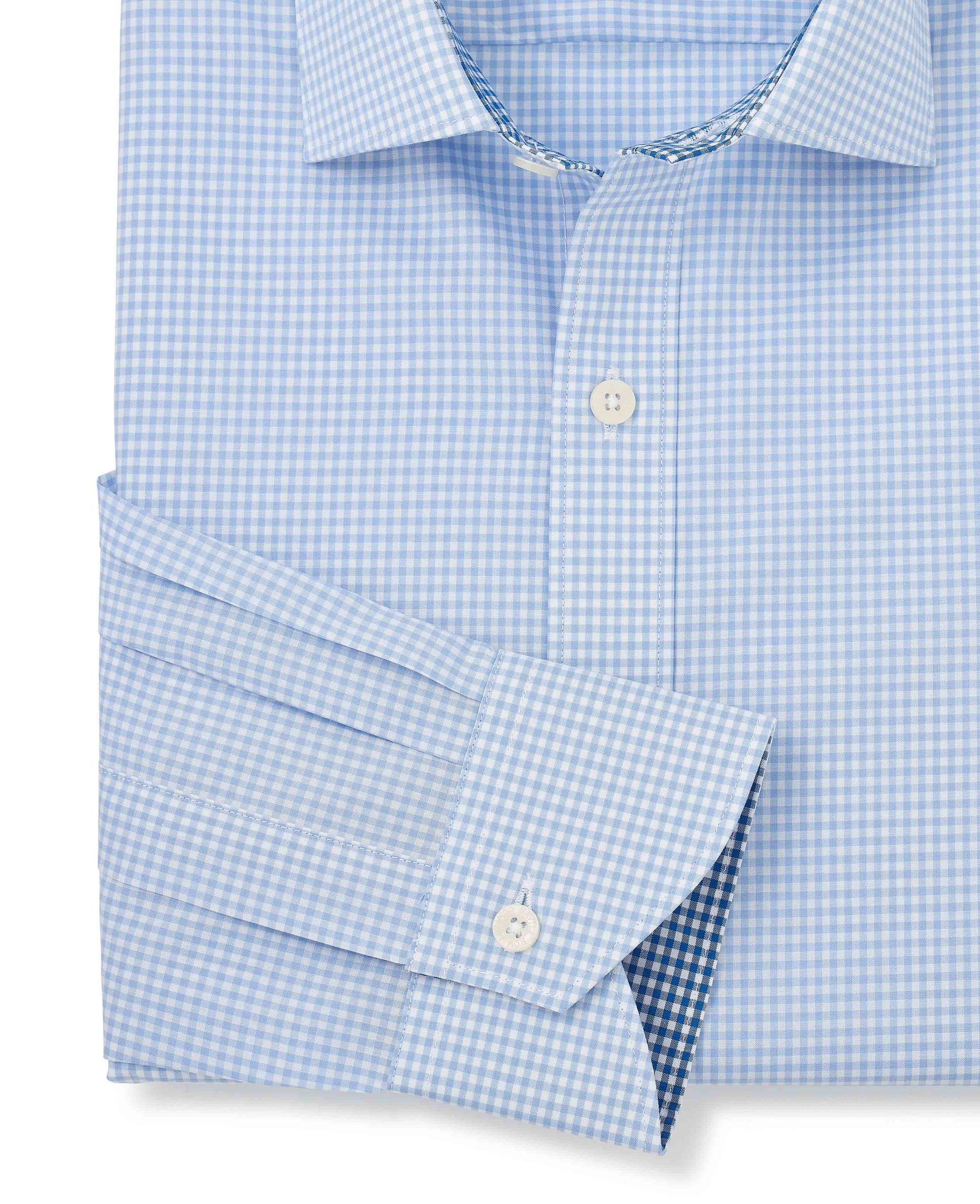 Our sky blue gingham formal shirt combines classic charm with modern elegance. Made from high-quality cotton poplin, it’s lightweight, breathable and hypoallergenic, ensuring all-day comfort. The smooth, crisp texture of the poplin fabric offers a polished look, while the sky blue gingham pattern adds a pop of character to your formal wardrobe. You’ll also find contrast detailing at the inside of the neck and cuffs.