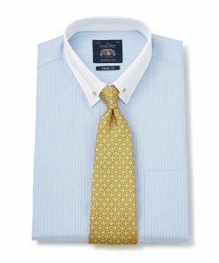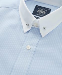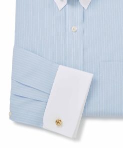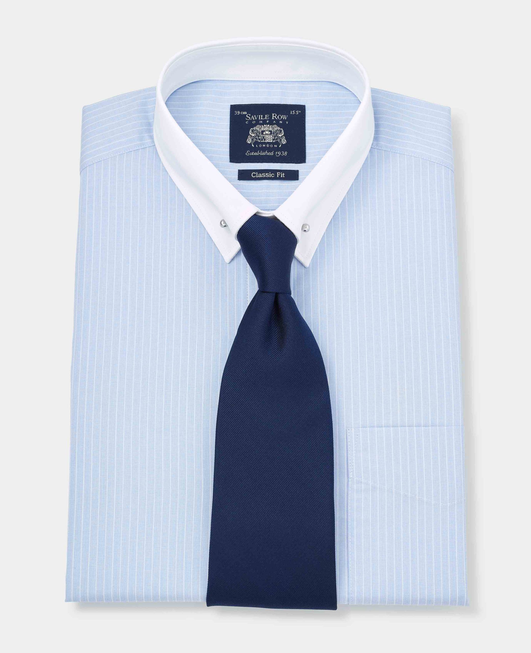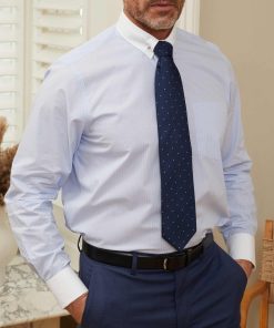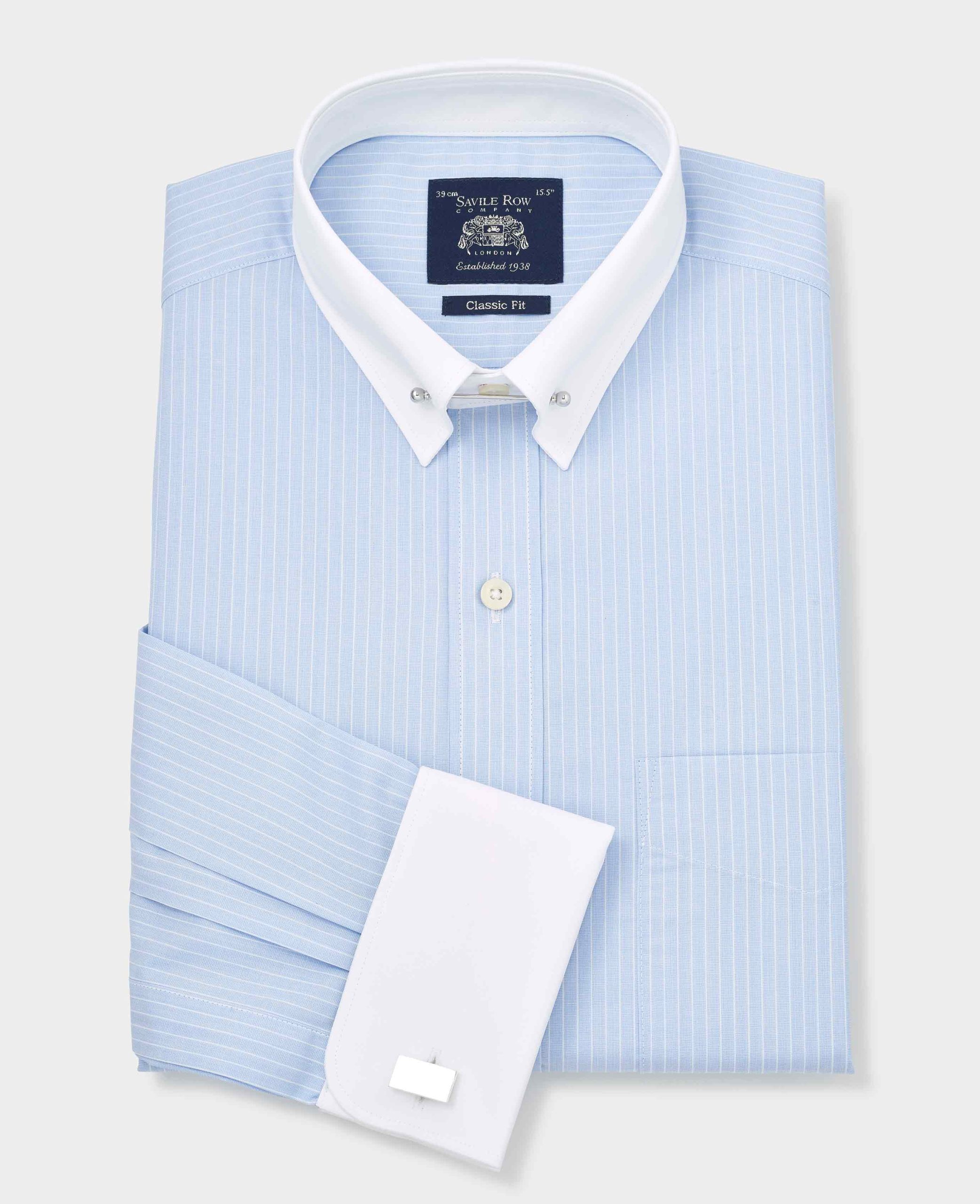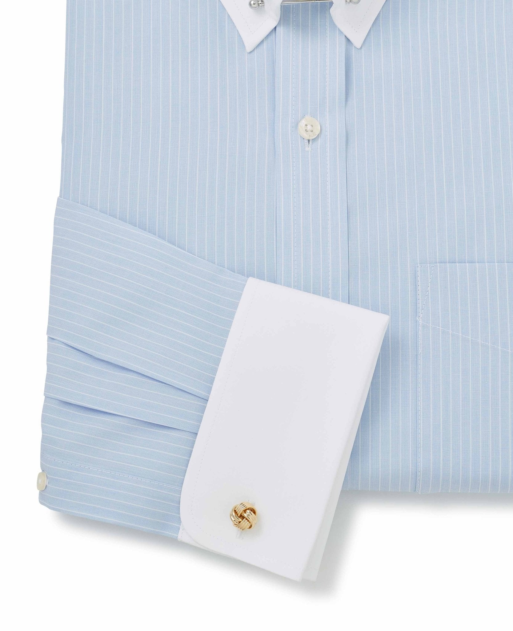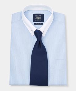 Our popular pin collar shirt, now in a refined sky blue and white stripe design, is a true sartorial statement. The pin collar – a distinguished detail, lifts and holds the tie knot in place, creating a sharp, elevated look that exudes sophistication. Traditionally worn for formal occasions, it’s the perfect choice for weddings, business events or whenever you want to make an impression. Cut in a generously proportioned classic fit with a contrast collar and cuffs, it offers both comfort and timeless elegance. Plus, we include both gold and silver-tone collar bars, so you can tailor your look to suit your style.