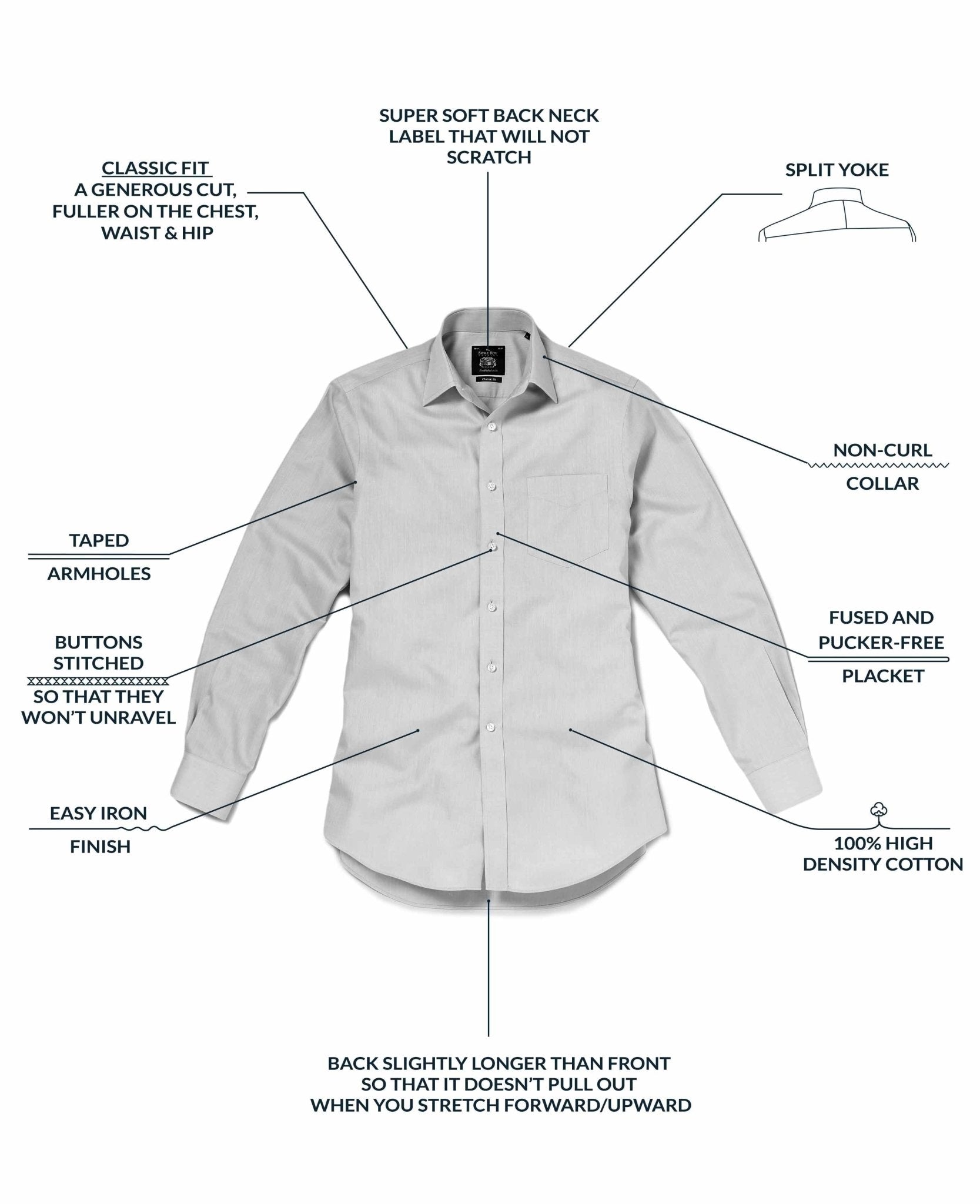 - Generously proportioned classic fit