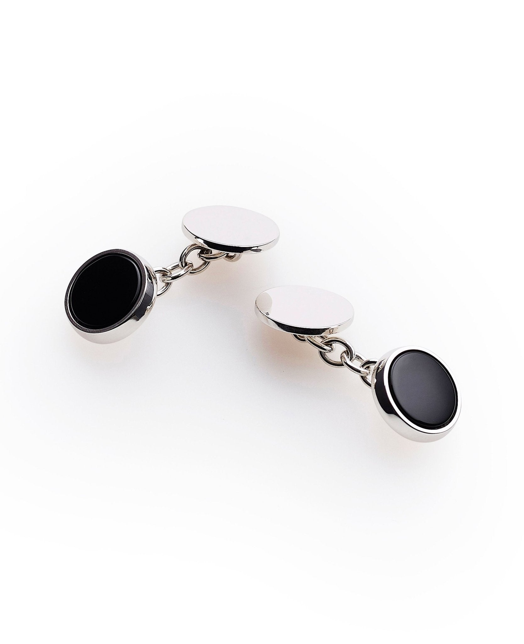 Savile Row Men’s Sterling Silver Onyx Stone Chained Cufflinks | Sterling