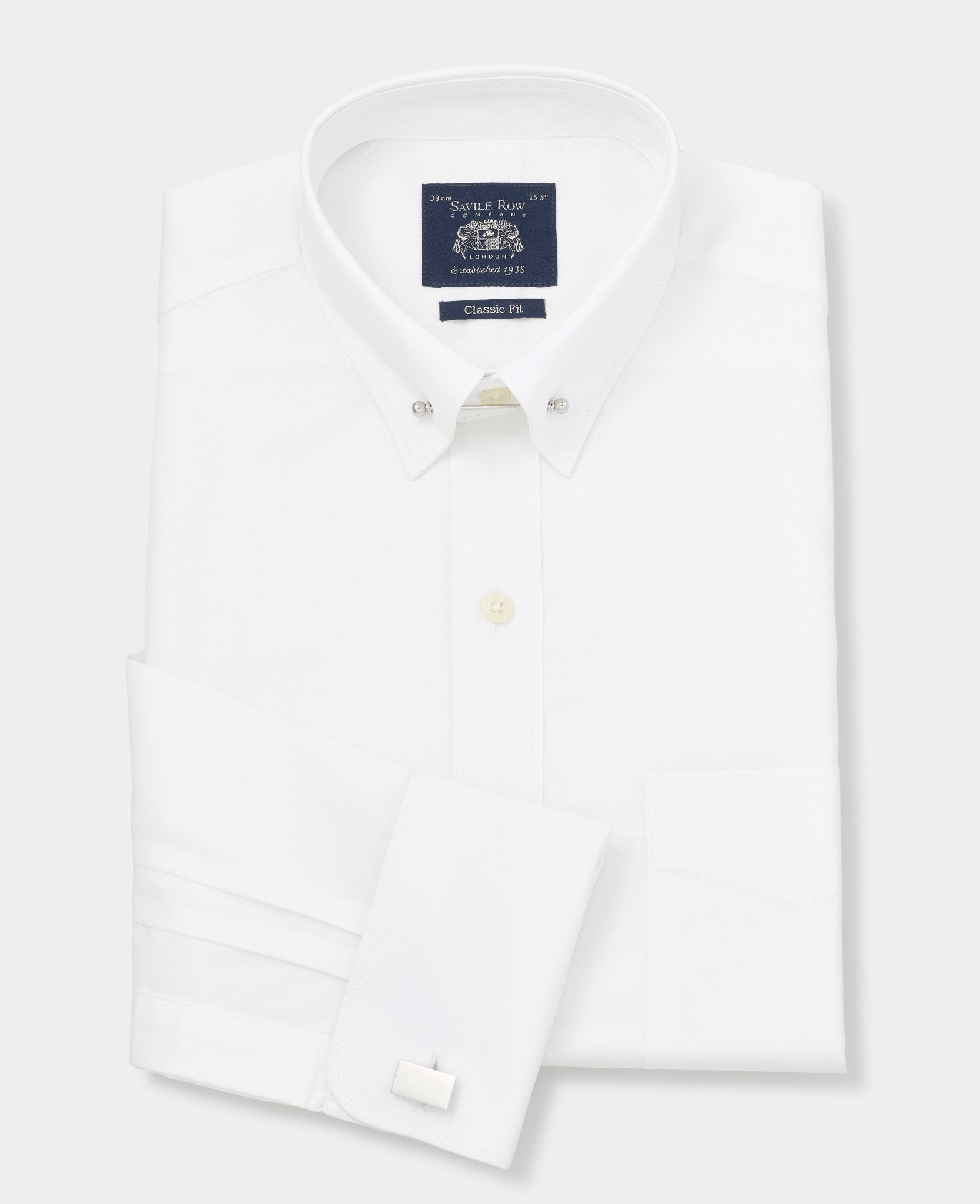 Our popular pin collar shirt in a spacious classic fit. Crafted from 100% cotton with a curl-resistant collar and elegant double cuffs. Perfect for special occasions such as wedding or awards evenings. Take your pick from a gold or silver-tone collar bar (we’ll send you both).