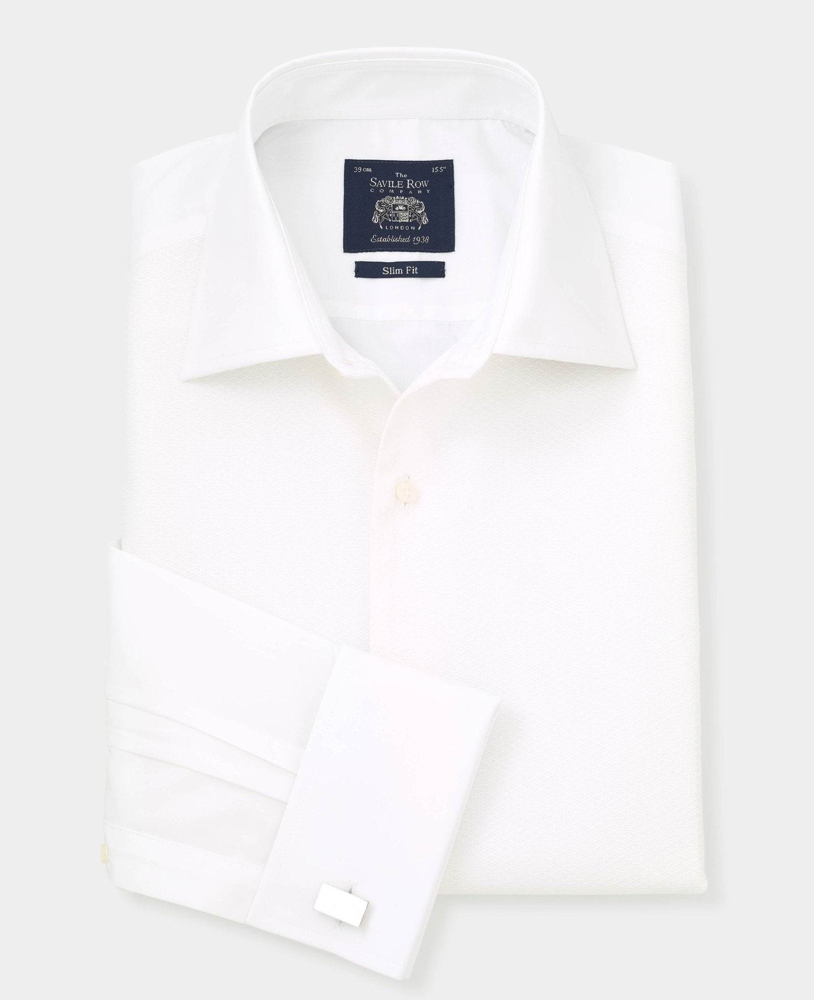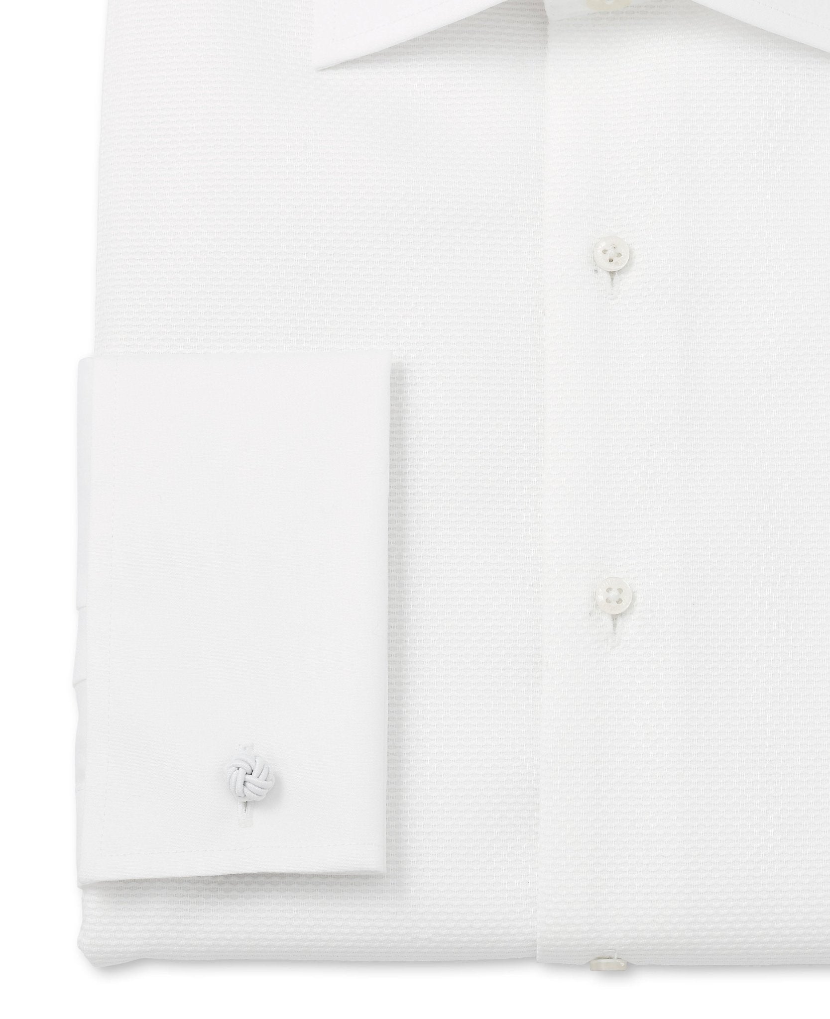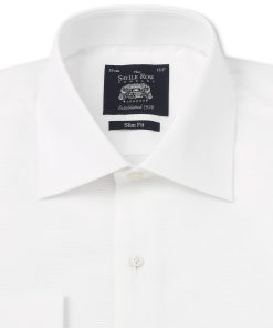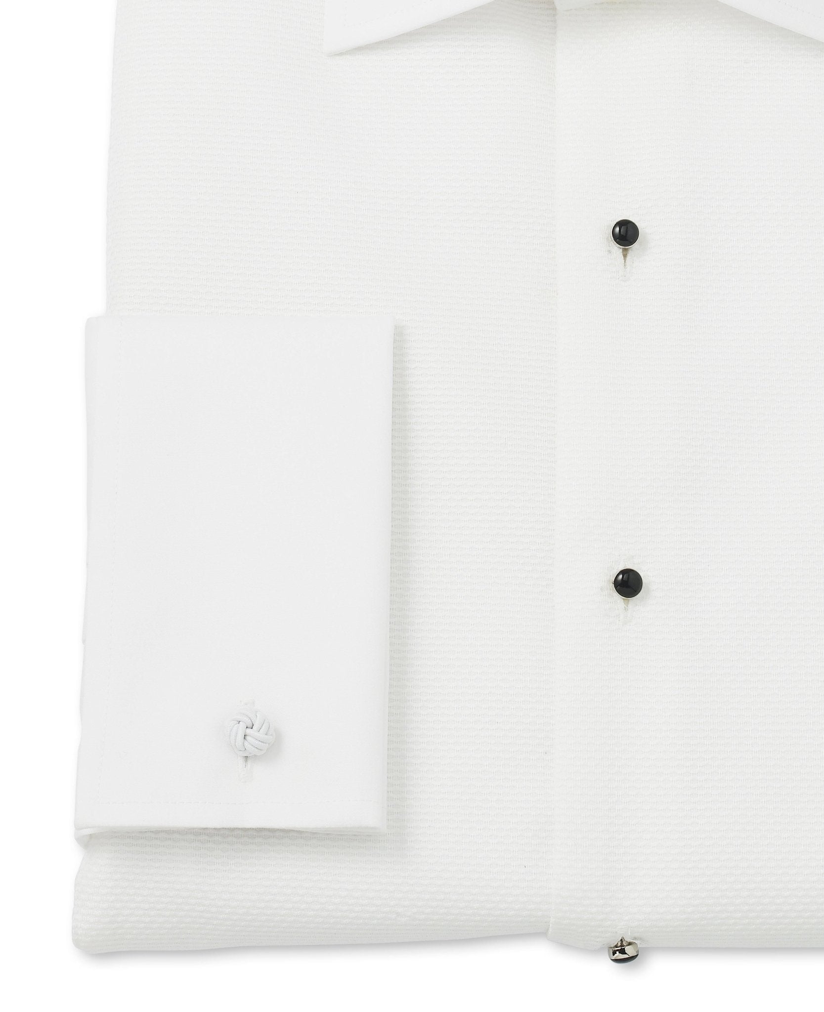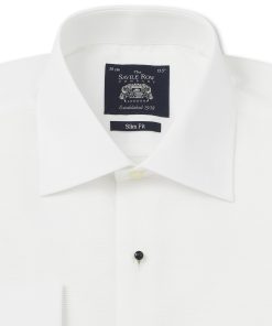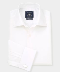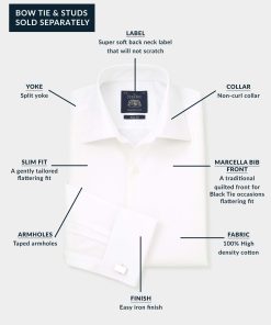 Crisp and refined, this white cotton evening shirt is the ultimate choice for black-tie elegance. Designed to be worn with a dinner suit and black bow tie, it features a sophisticated cutaway collar, a distinctive honeycomb texture and a classic Marcella bib – perfect for creating a polished, formal look. Whether you’re attending an awards evening, wedding or any distinguished event, this dress shirt ensures you make a timeless and effortless statement.