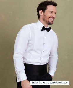 - Shirt comes with buttons down front placket, can also use black studs which push into small buttonholes next to the button (sold separately)