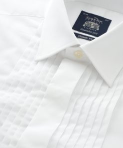This elegant dress shirt is cut to our classic fit for a roomy shape that offers unrivalled comfort. It’s made from 100% cotton and features a fully pleated front and curl-resistant collar. The double cuffs can accommodate your favourite cufflinks for a luxury finish.