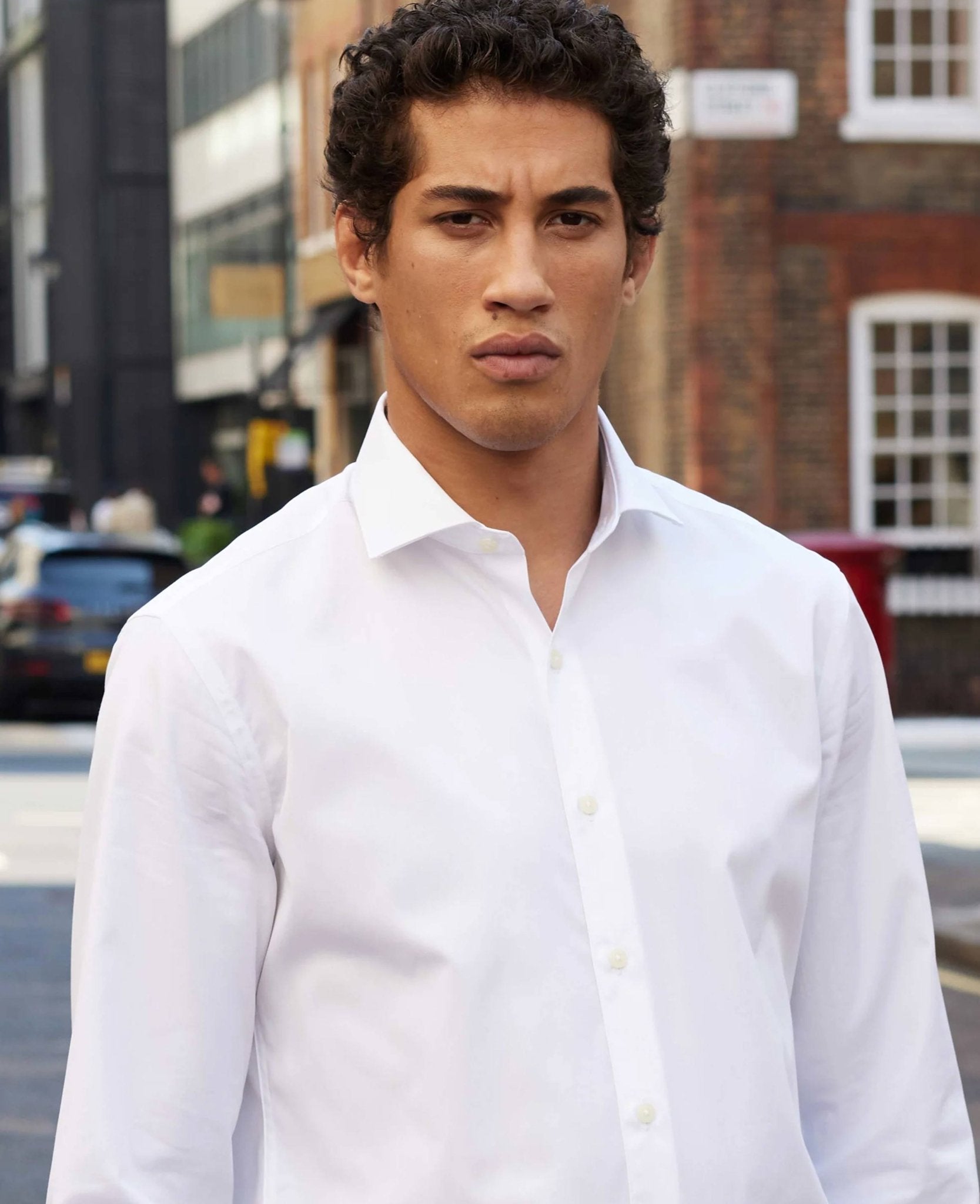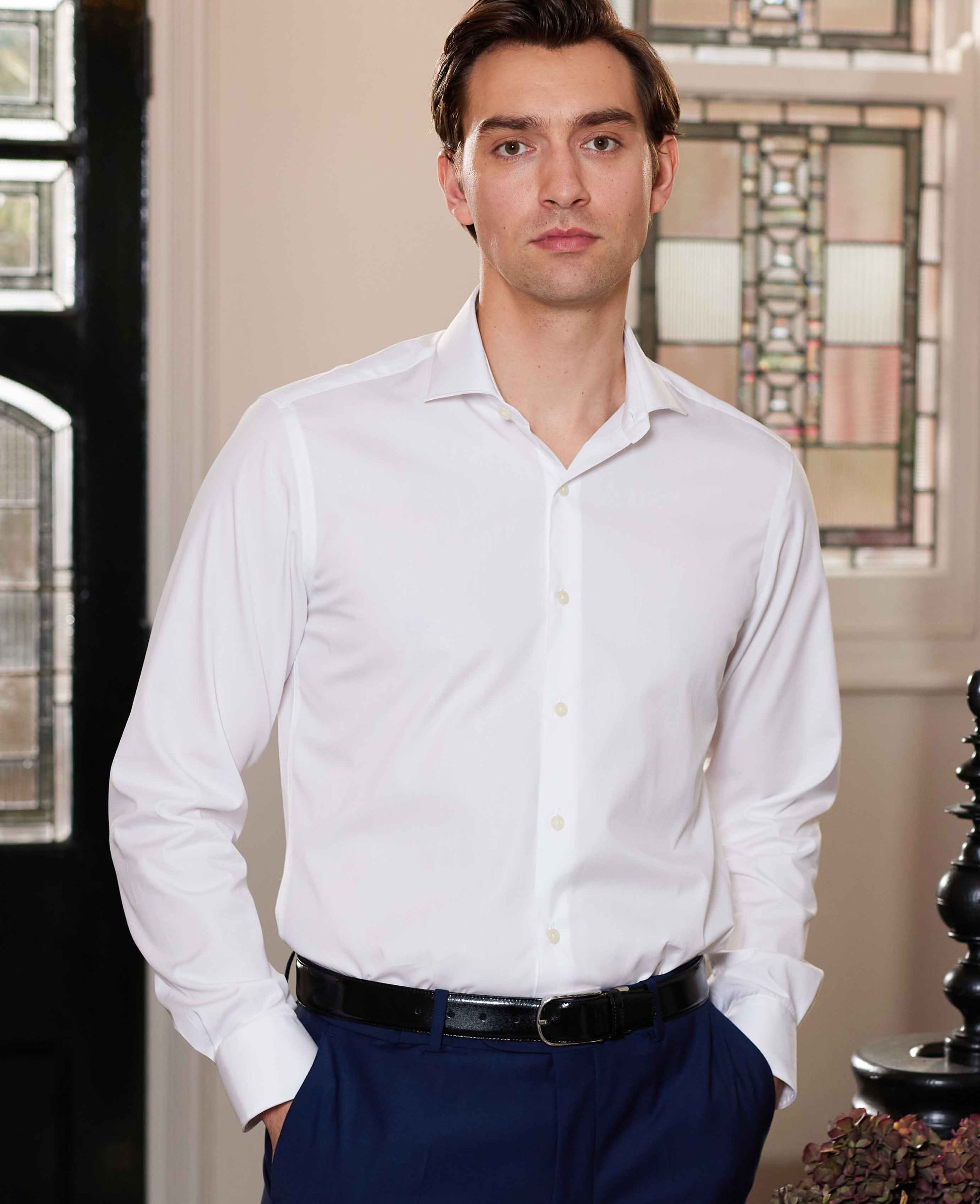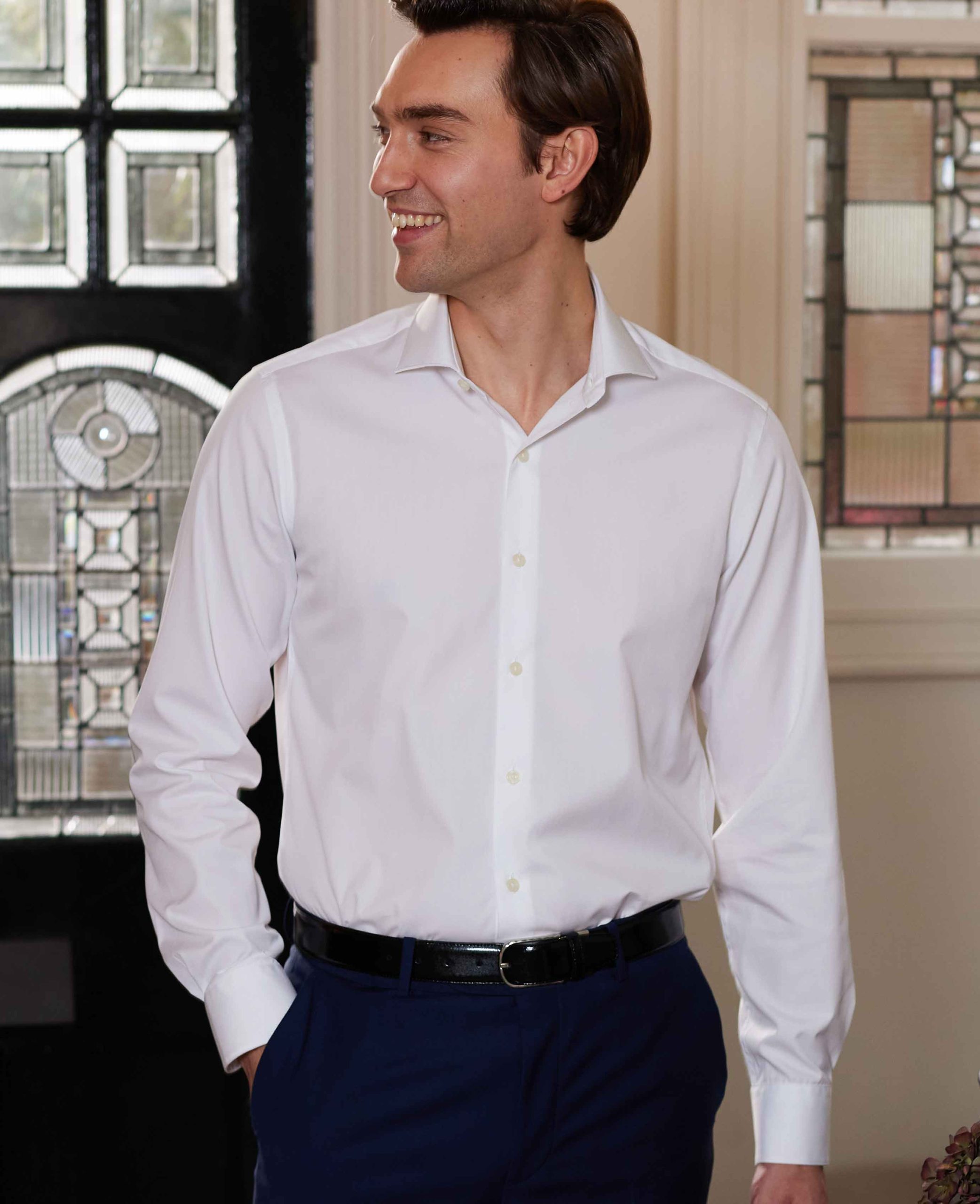 When it comes to white shirts, this version offers you optimum elegance. Made from super soft cotton with curved single cuffs and a fine edge stitched French placket for seamless style. Not just for the office, it’s also an excellent choice for weddings and black tie events.