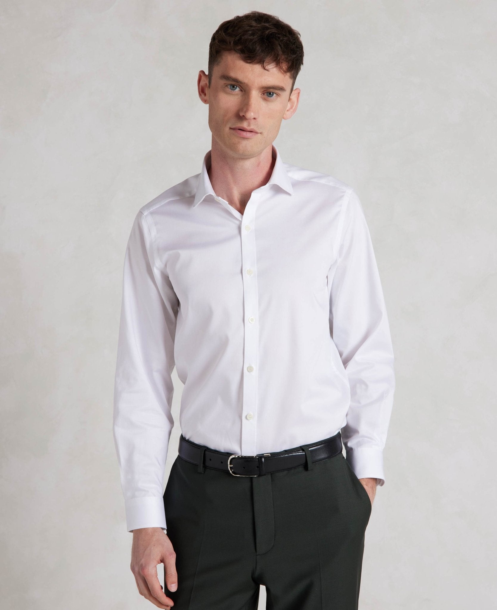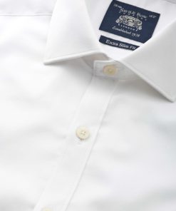Cut to our most tailored fit, this extra slim white shirt will become the foundation of your favourite ensembles. It’s made from soft cotton and finished with a curl-resistant collar and single cuffs.